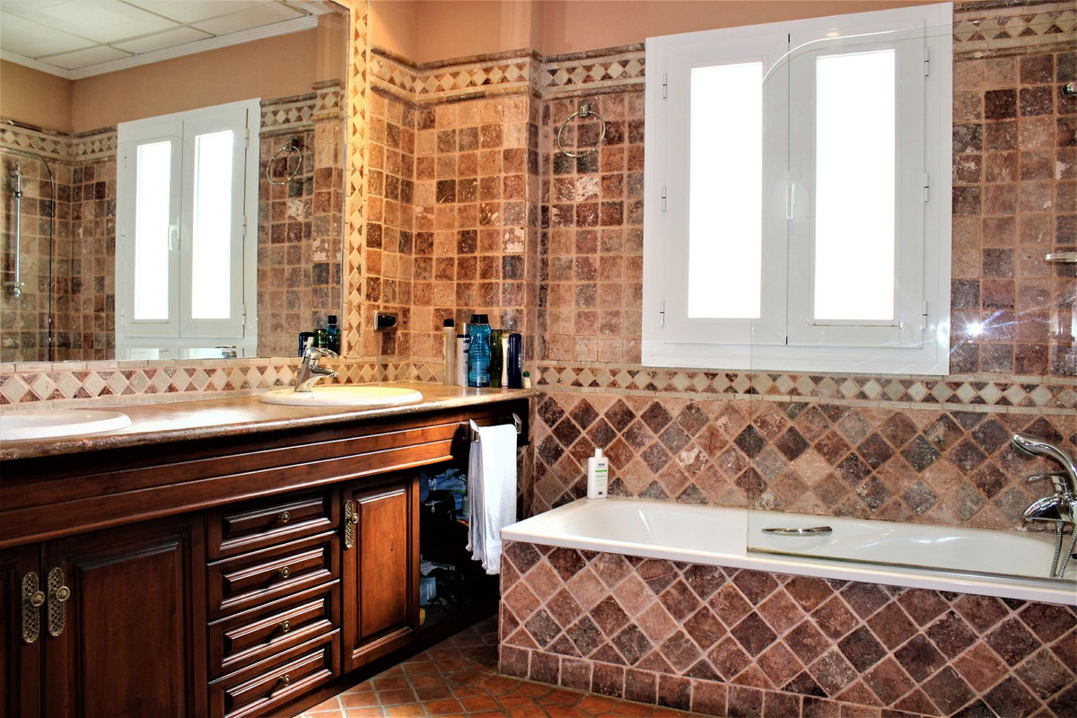 Discover this luxurious and elegant pool villa for sale in the exclusive urbanization Punta de la Mona, La Herradura, on the Costa Tropical. This spacious home offers five bedrooms with en-suite bathrooms and an additional guest bathroom. The well-planned garden spans over a plot of more than 800 sqm. Perfectly located, just an hour's drive to Malaga Airport and a 20-minute walk to the nearest beach.