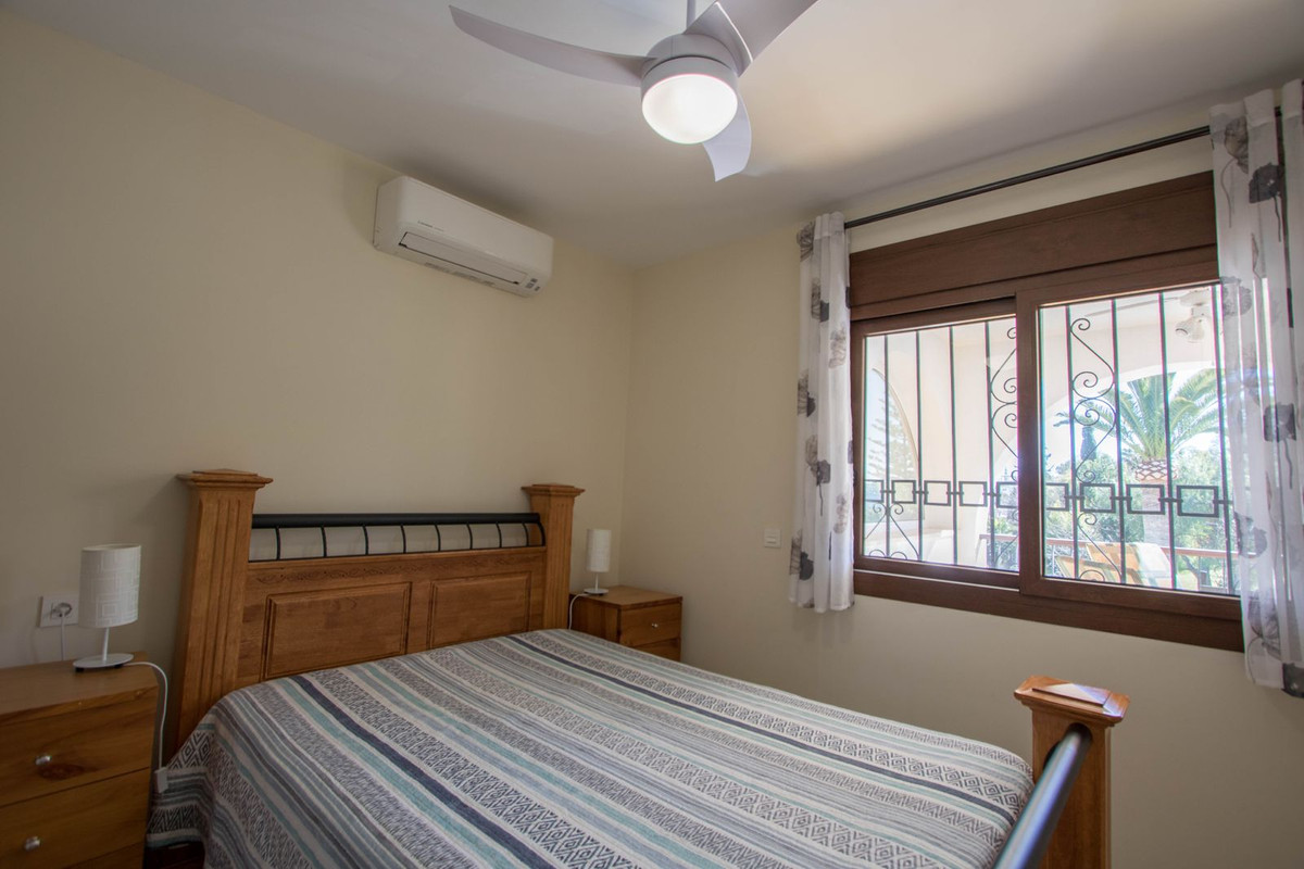 On the first floor via the original style Andalucian staircase there are another three double bedrooms with two bathrooms, master one on-suite and a large size private terrace. One of the bedrooms has its own, large-size covered, private terrace - offering wonderful views of the huge size landscaped garden, swimming pool, overseeing the surrounding area and affording a sea view. All bedrooms are air-conditioned with high quality Kommerling double glazing doors and windows - with integral external, electric blinds (shutters).