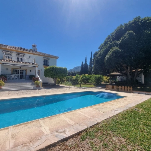Country house located on the outskirts of Alhaurin el Grande with a plot of more than 14,000m2 ideal for horse lovers. The house is on one floor and consists of a large front porch as well as a rear porch towards the pool area which is surrounded by a large terrace and from where you can enjoy magnificent views of Alhaurin el Grande.