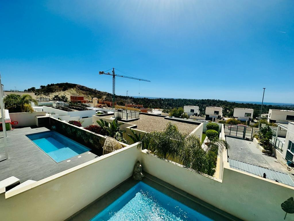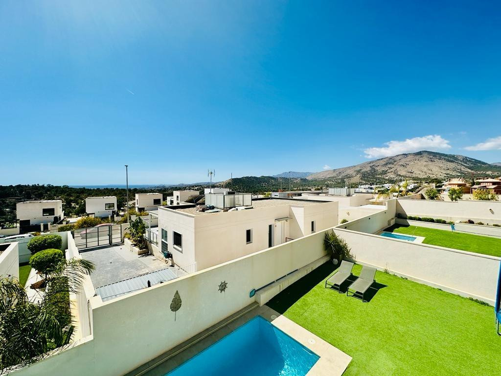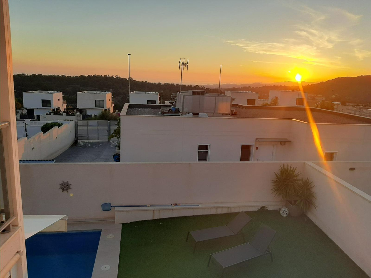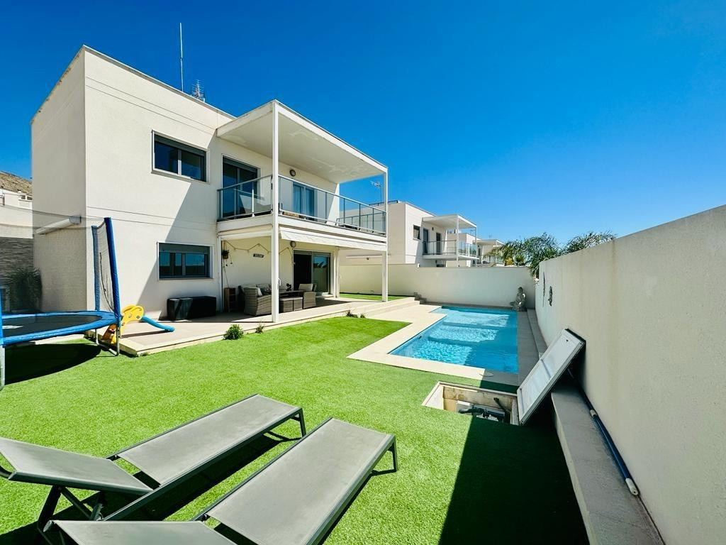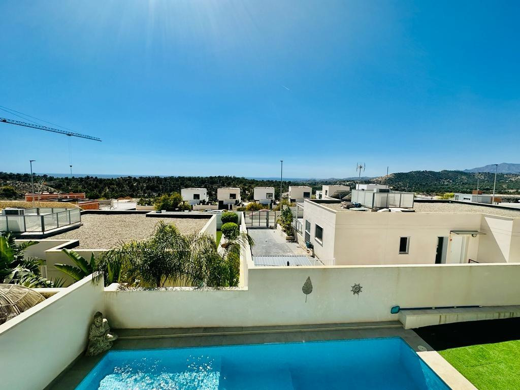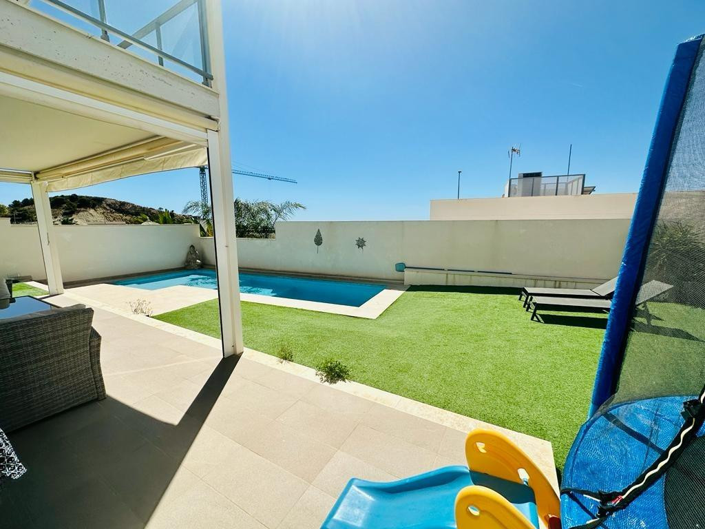 This recently built house has avant-garde design, a large plot, privacy and views of the sea and the mountains.The 150 m built are distributed over 2 floors:Ground floor: spacious and bright living room with access to a covered terrace, the garden and the pool + fully equipped independent kitchen (The architecture of the house allows the removal of the partition that separates the kitchen from the living room, to create a large, very modern space) + 1 full bathroom + 1 bedroom + a multipurpose space (currently a play area/gym) + an open space with an artificial garden to practice outdoor sports or for the little ones in the house to play.Large garden, pool and barbecue area.Upper floor: 3 bedrooms + 2 full bathrooms. A master double bedroom with en-suite bathroom and access to a covered terrace, another double bedroom and a third single bedroom (currently set up as an office, which also has access to the terrace). All rooms have built-in wardrobes lined on the inside and with a large capacity.The property has parking with capacity for 2 cars and a small storage room.To highlight its qualities, floors in the house of laminated flooring, bathrooms and kitchen porcelain floors, AACC cold heat through ducts separated by plants, awnings on the terraces, lighting around the perimeter, artificial garden, large pool with children's area or chill out , enclosures with thermal break and double glass with air chamber, armored entrance door, motorized parking door, aerothermal energy for ACS.It is sold fully furnished and with the kitchen equipped with all electrical appliances, ready to move into. South facing and views of the sea and the mountains.It has an excellent location, in the exclusive area of Balcón de Finestrat, currently in high demand, a few meters away we have a public school and the golf course is very close. The Marina Shopping Center and Cala de Finestrat are 5 minutes away by car. The theme parks (Terra mitica, Terra natura, Aqua natura) are also very close. Fantastic area in full expansion in which the construction of a sports center, an institute and a second school is planned.Request a visit and do not miss this great opportunity, this property has everything you need to become your home.