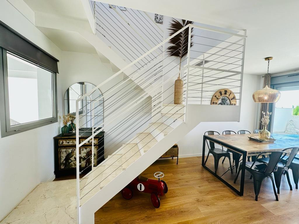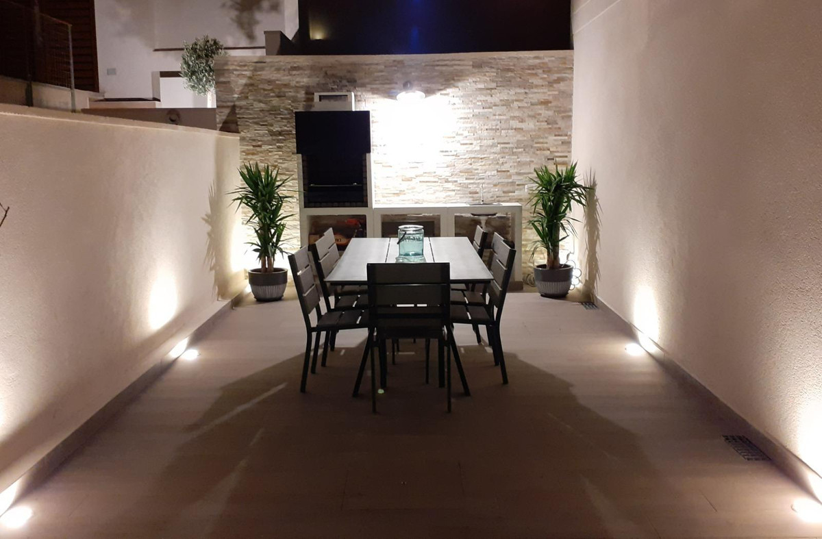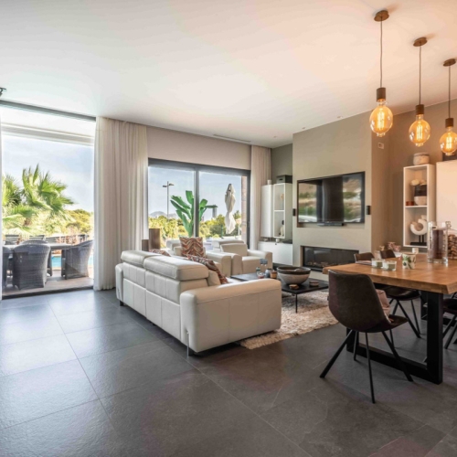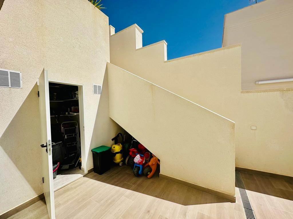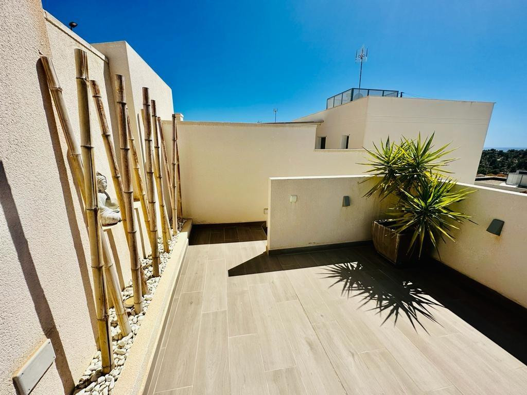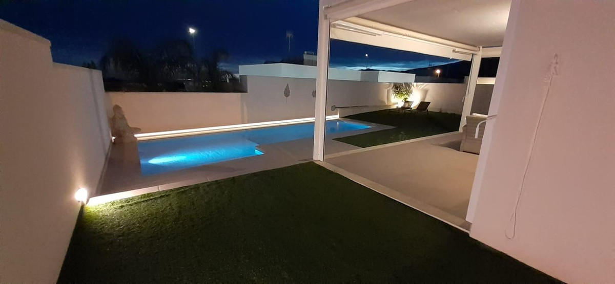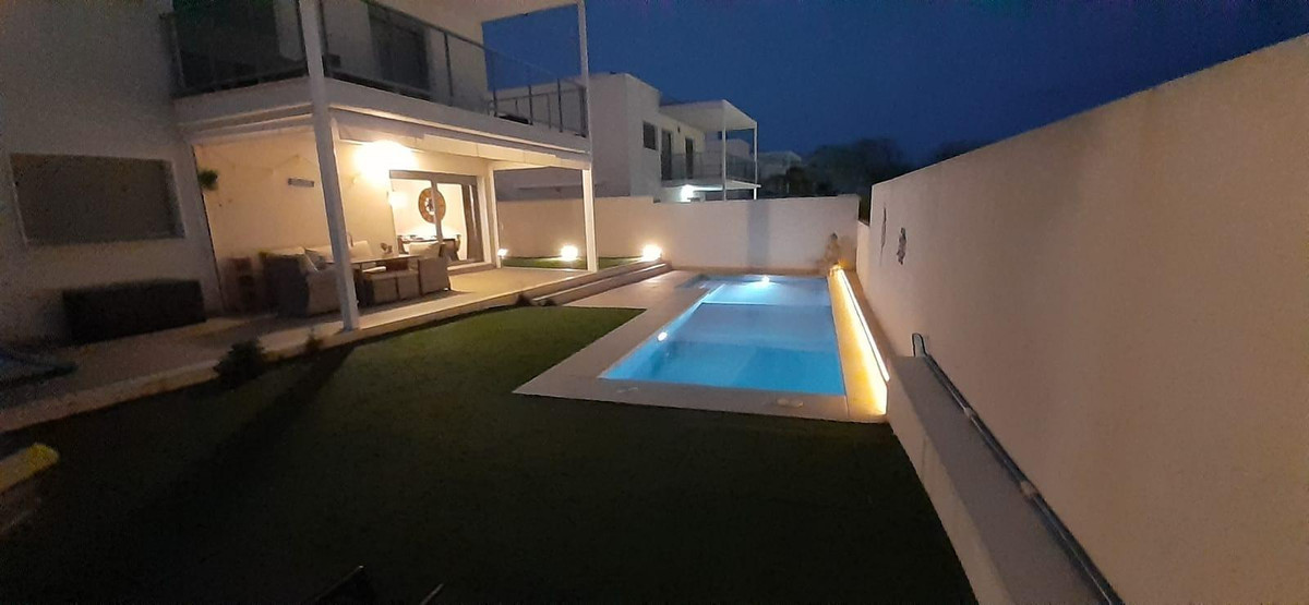 This recently built house has avant-garde design, a large plot, privacy and views of the sea and the mountains.The 150 m built are distributed over 2 floors:Ground floor: spacious and bright living room with access to a covered terrace, the garden and the pool + fully equipped independent kitchen (The architecture of the house allows the removal of the partition that separates the kitchen from the living room, to create a large, very modern space) + 1 full bathroom + 1 bedroom + a multipurpose space (currently a play area/gym) + an open space with an artificial garden to practice outdoor sports or for the little ones in the house to play.Large garden, pool and barbecue area.Upper floor: 3 bedrooms + 2 full bathrooms. A master double bedroom with en-suite bathroom and access to a covered terrace, another double bedroom and a third single bedroom (currently set up as an office, which also has access to the terrace). All rooms have built-in wardrobes lined on the inside and with a large capacity.The property has parking with capacity for 2 cars and a small storage room.To highlight its qualities, floors in the house of laminated flooring, bathrooms and kitchen porcelain floors, AACC cold heat through ducts separated by plants, awnings on the terraces, lighting around the perimeter, artificial garden, large pool with children's area or chill out , enclosures with thermal break and double glass with air chamber, armored entrance door, motorized parking door, aerothermal energy for ACS.It is sold fully furnished and with the kitchen equipped with all electrical appliances, ready to move into. South facing and views of the sea and the mountains.It has an excellent location, in the exclusive area of Balcón de Finestrat, currently in high demand, a few meters away we have a public school and the golf course is very close. The Marina Shopping Center and Cala de Finestrat are 5 minutes away by car. The theme parks (Terra mitica, Terra natura, Aqua natura) are also very close. Fantastic area in full expansion in which the construction of a sports center, an institute and a second school is planned.Request a visit and do not miss this great opportunity, this property has everything you need to become your home.