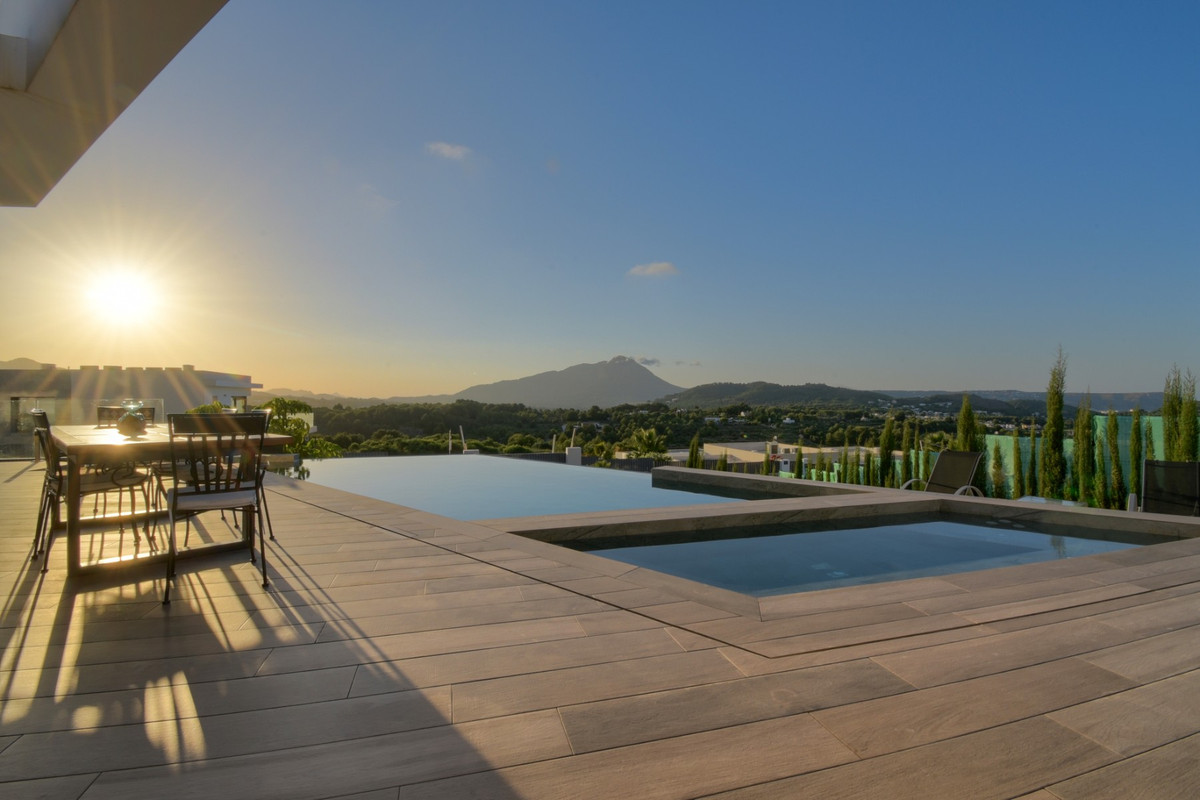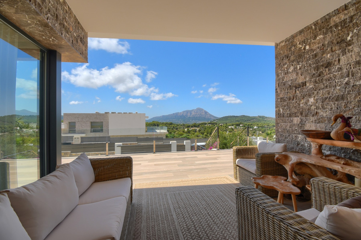Villa built in 2020, located in the luxurious residential area of Monte Olimpo in Jávea, a few minutes from the beach, schools, restaurants, supermarkets, and the Golf course. This beautiful and modern villa with natural stone on part of the facade has views of the sea, the mountains and the valley.\n