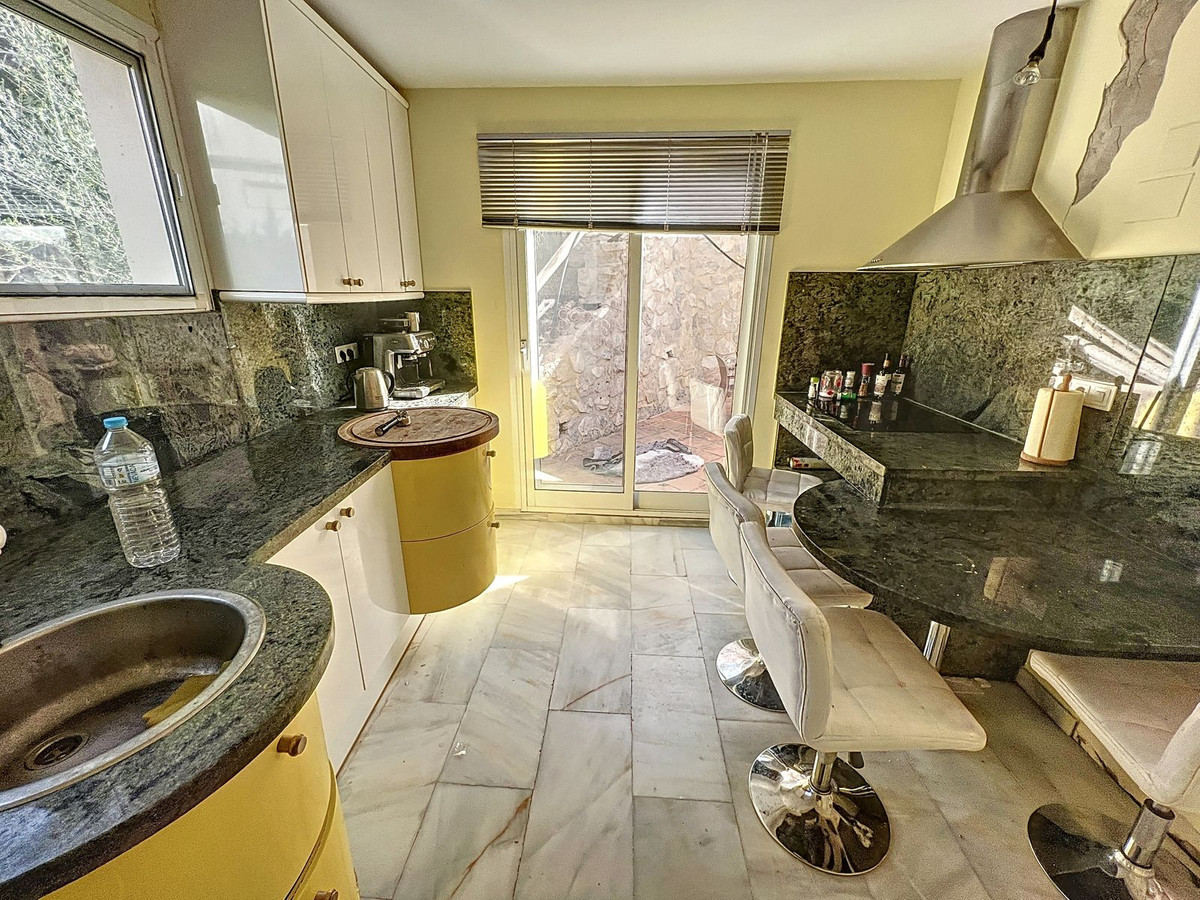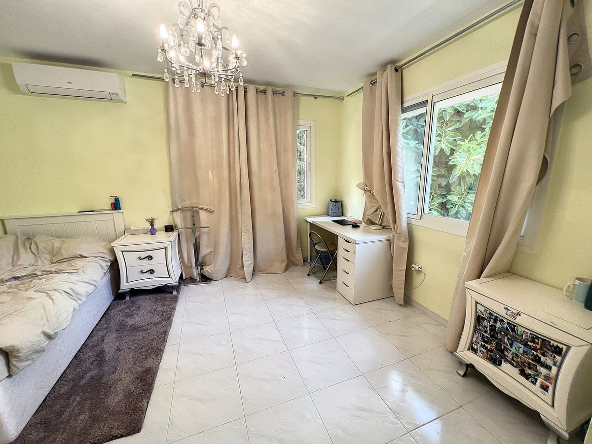 On the mid-level of the villa, there's a double bedroom with fitted wardrobes and captivating views down to the inviting pool. A full bathroom completes this level.