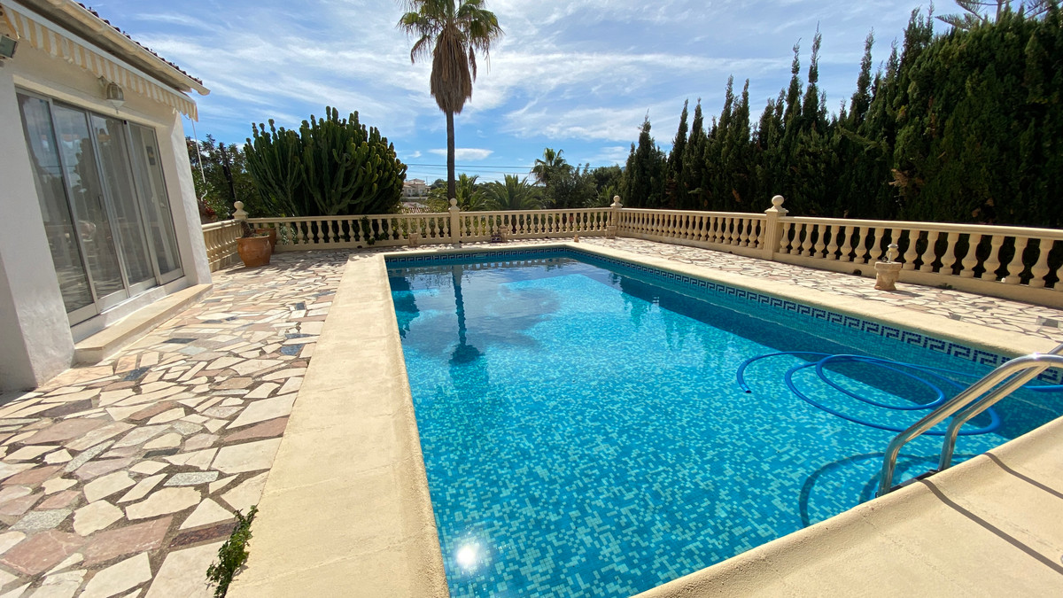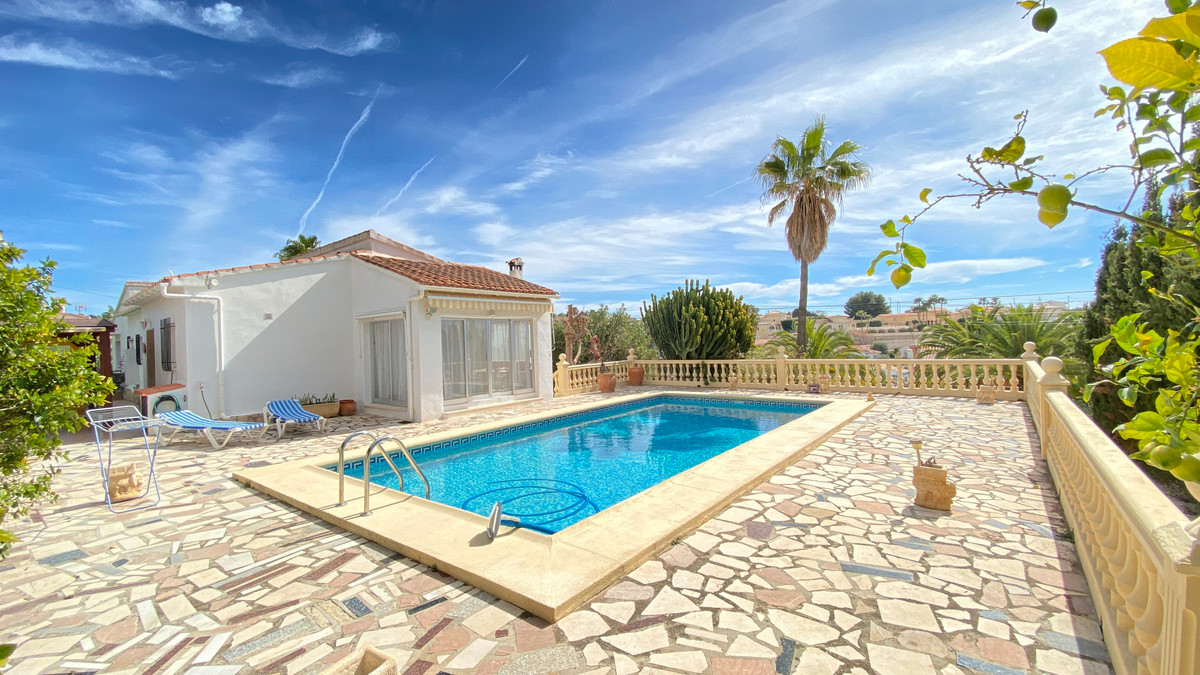 Cozy villa on one floor in Gran Sol, a very quiet urbanization 1.8 km from the beach and 3.5km from the center of Calpe. It consists of a large hall, living room, 3 bedrooms 2 bathrooms and covered terrace and acriastalada. Outside we do not find the garden, 2 pergolas, and the main terrace with swimming pool. Ideal to live all year round or holiday rental.