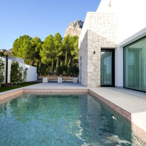 Beautiful two-story villa with an exquisite design, an area of 145m2 and an enviable location that offers an exceptional living experience. This property has a series of features that make it stand out from the rest, providing comfort, beauty and luxury in equal parts.**Villa description:**Located on a 500m2 plot, this villa is immersed in a natural environment that offers stunning views. From majestic mountains to lush green forests and the immense blue sea, each window and terrace of this house gives you a postcard landscape.**Low level:**- A spacious living room, flooded with natural light, with windows that connect fluidly with the garden. This space is perfect for entertaining and relaxation.- A designer kitchen with a central island windows that frame views of the valley, turning meal preparation into a unique experience.- A double bedroom that offers comfort and space.- A guest bathroom that combines functionality and style.- A modern wooden staircase that takes you to the second floor.**Upper floor:**- Two double bedrooms, each with its own en-suite bathroom, ensuring the privacy and comfort of residents.- A terrace that surrounds practically the entire villa, from where you can enjoy panoramic views by day and starry nights.**Additional characteristics:**- A pantry that provides additional space for storage.- Covered parking space to protect your vehicle.- Equipped with solar panels and aerothermal energy, which guarantees energy efficiency.- Air conditioning in all rooms, which allows maintaining a pleasant climate in any season.- Built-in wardrobes that maximize storage space.- Electric blinds for greater comfort and security.- Designer appliances and furniture that add a touch of elegance and sophistication to the property.The exterior of this villa is a paradise with a beautiful pergola and a 30m2 private pool, surrounded by lush gardens where fruit trees and flowers grow all year round, thanks to an automatic irrigation system and lighting that enhances its beauty by the evening.This villa represents the perfect balance between luxury and nature, offering comfortable and elegant living in a dreamlike setting. If you are looking for a residence that satisfies all your wants and needs, this is the opportunity you have been waiting for. Don't hesitate to contact us for more information or to schedule a visit. You won't want to miss the opportunity to live in this oasis of beauty and comfort!
