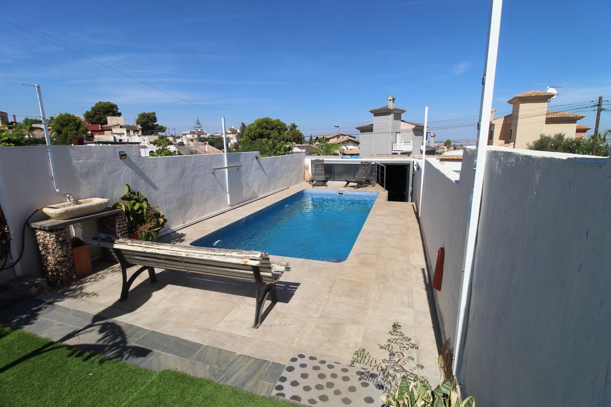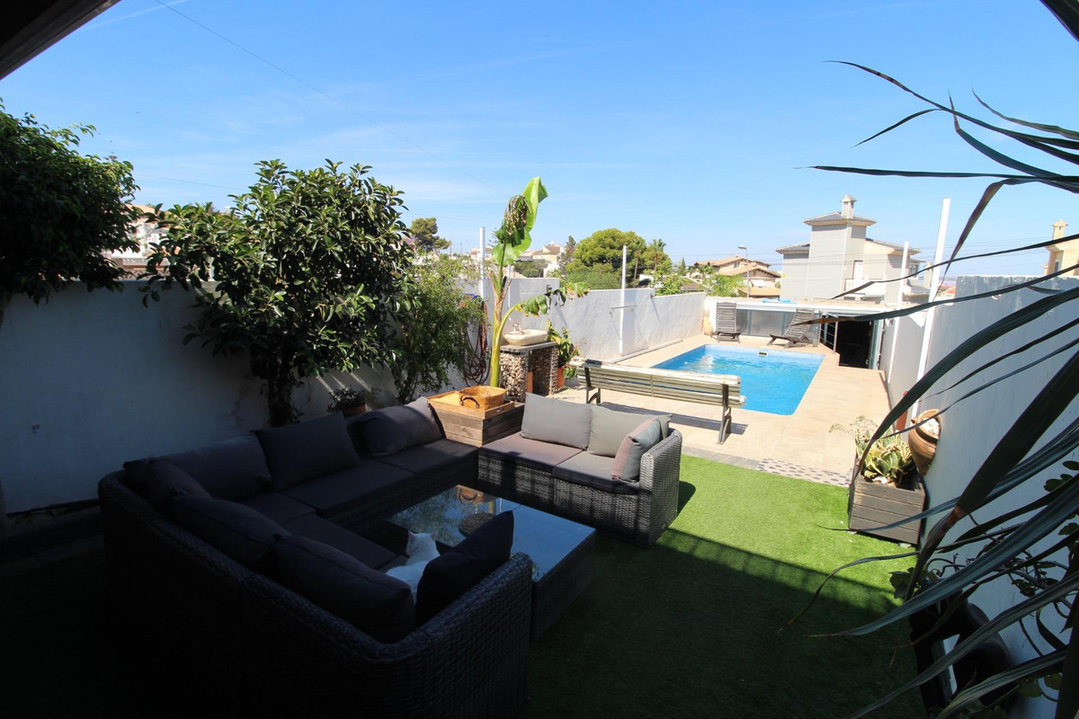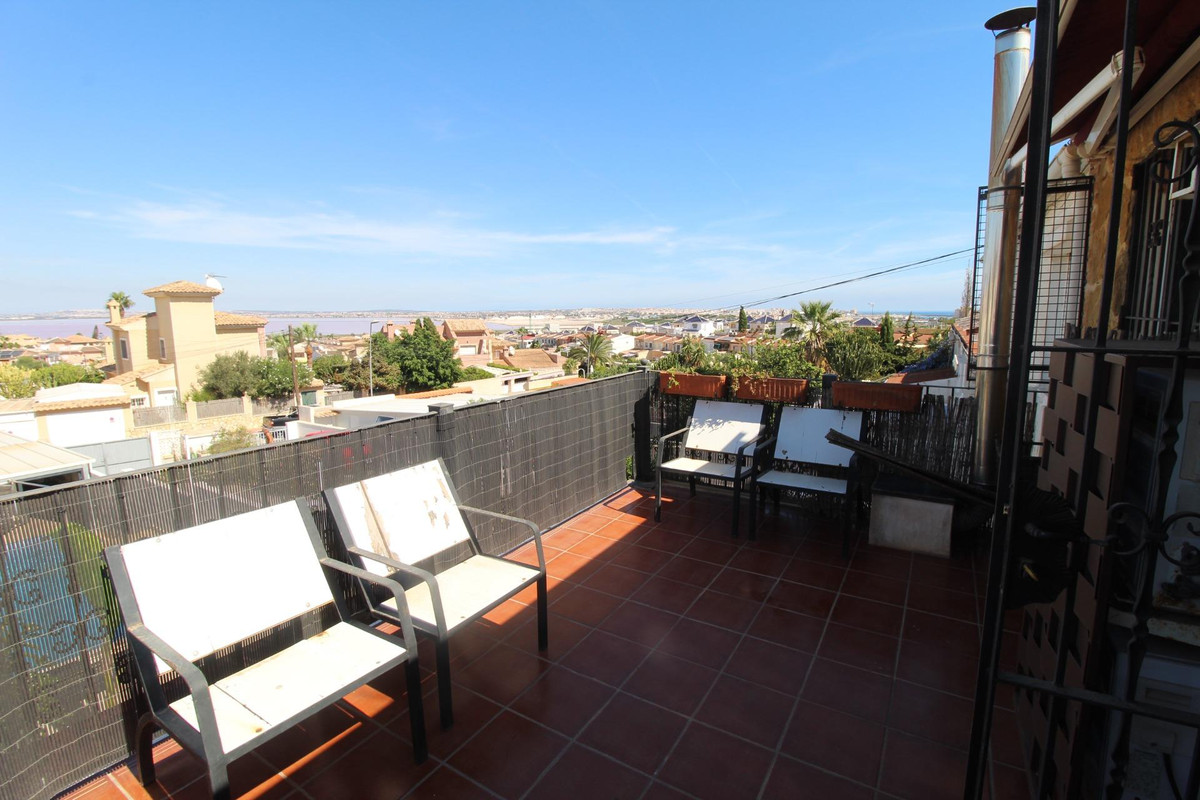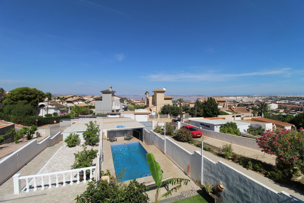 This beautiful property is located in the area of Los Balcones,Torrevieja. It is an impressive house that has a total built area of 94 m² on a plot of land measuring240m²and also featuresa large garden surrounded by fruit trees.The home offers three bedrooms (two doubles and one single), two full bathrooms,a fully equipped kitchen independent fromthe living-dining room; whichalso enjoys spectacularviewsfrom its large panoramic windows towards the natural lagoons next tothe Mediterranean Sea.Especially noteworthy isthe incredible main terrace situated just above the twocar garagewhichis includedin price,andwhere you can relax while contemplating stunning sunsets perfectly oriented northwest overprivilegedareas,eitherby taking fresh air under cover or resting comfortably lying downafter cooling off previoulsyinside your own refreshig swimmingpoollocatedjustbelow this magnificent outdoor installation protected externally by completely opaque fences as wellas having automatic doors anda security grille guaranteeingfull enjoyment without any further worries added..In addition,the entirehousehas been designed,decorated,furnishedwith even themost demanding client's tastes satisfied.In terms o additional characteristics,itcomes withair conditioning,built-in closets inevery bedroom,a fireplace for winter,city gasandbarbecueso youcan cook delicious disheswhile enjoying quality time togetherwith familyorfriends.It also has common areas with apoolaswellasclose playgrounds ifyou wish to continue expandingyour leisuretime.The location is superb since it's close tonecessities such assupermarkets,schoolsand hospitals..Don't missoutonthis unique andrepetitiveopportunityto acquire this wonderfulproperty.