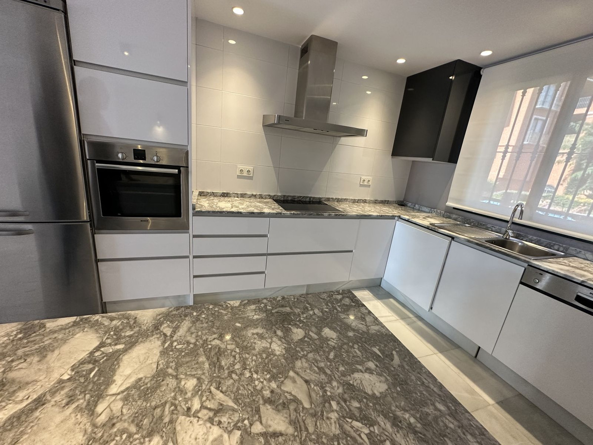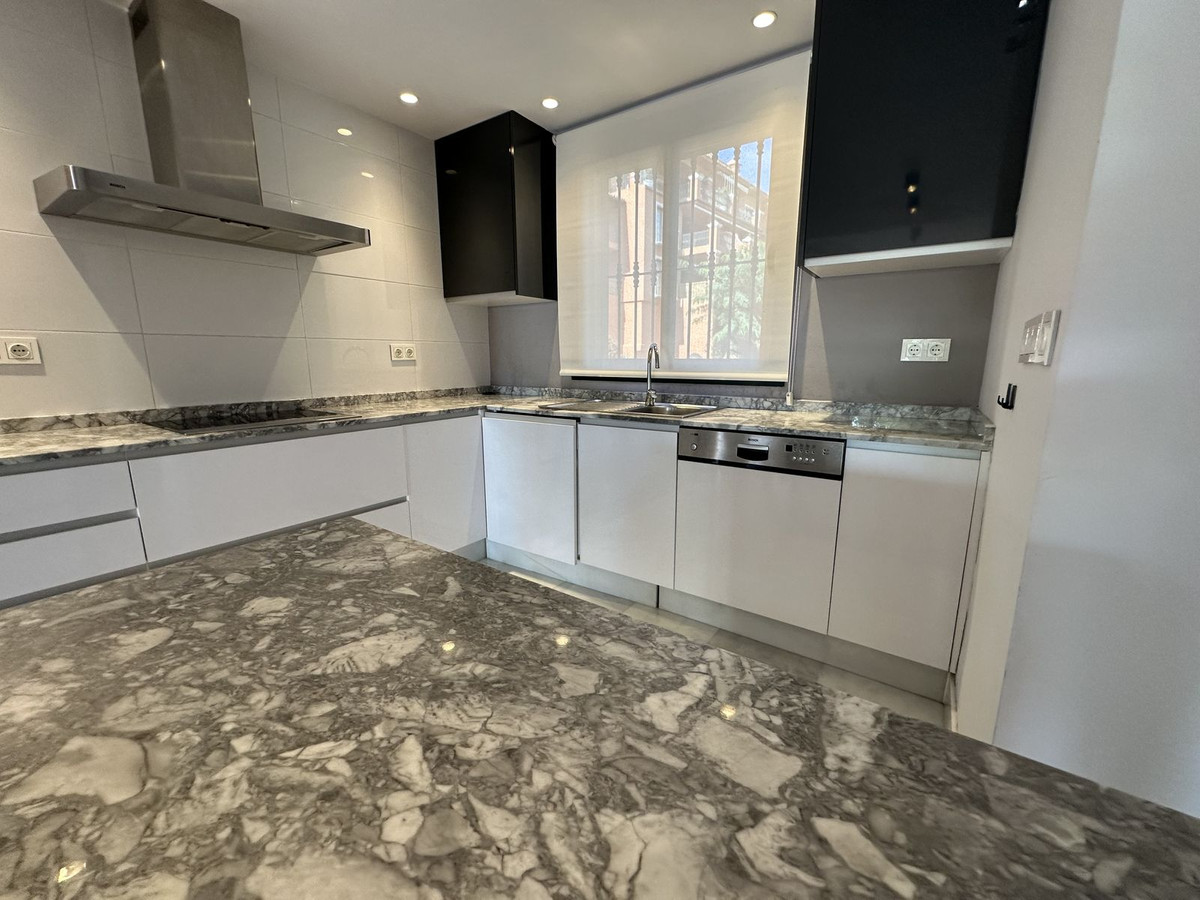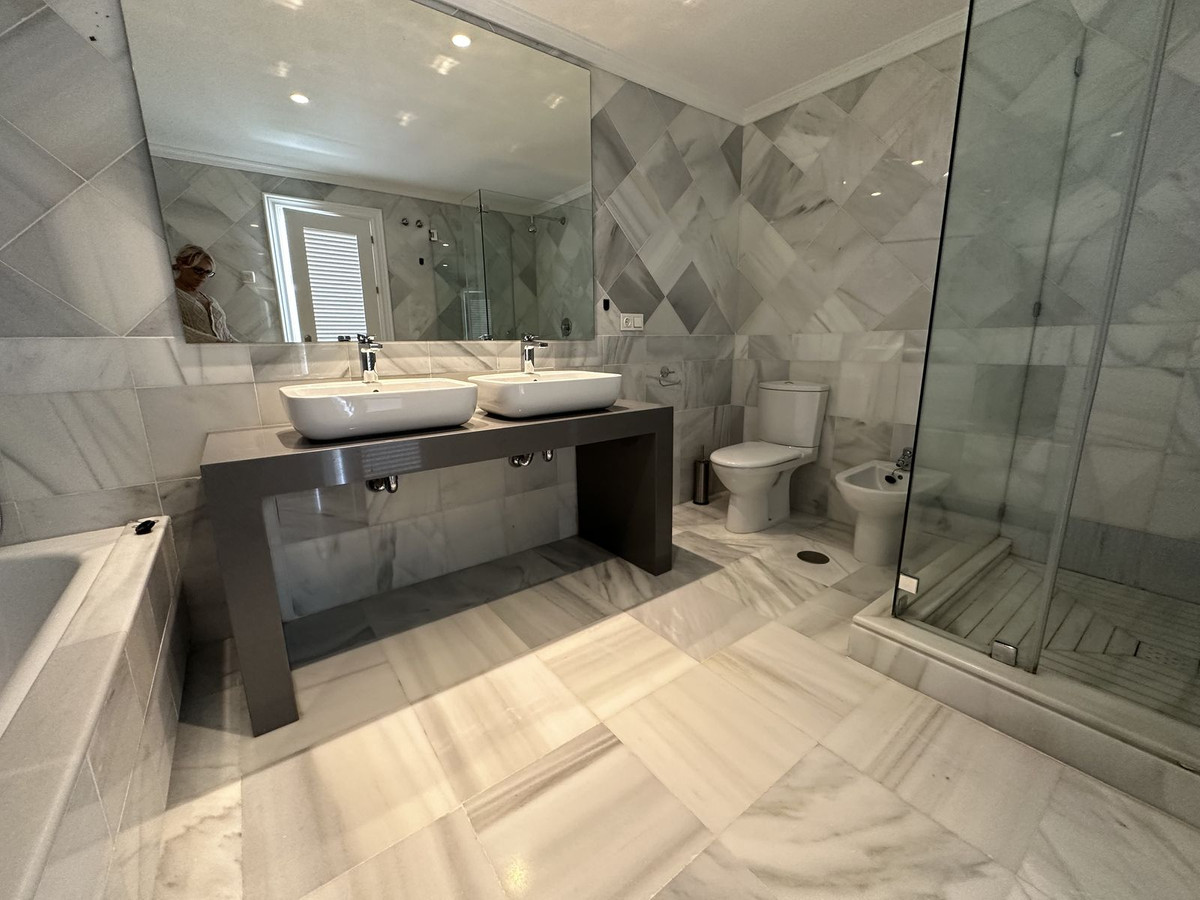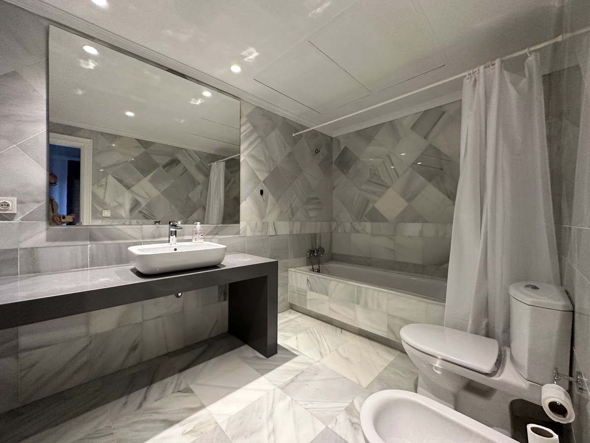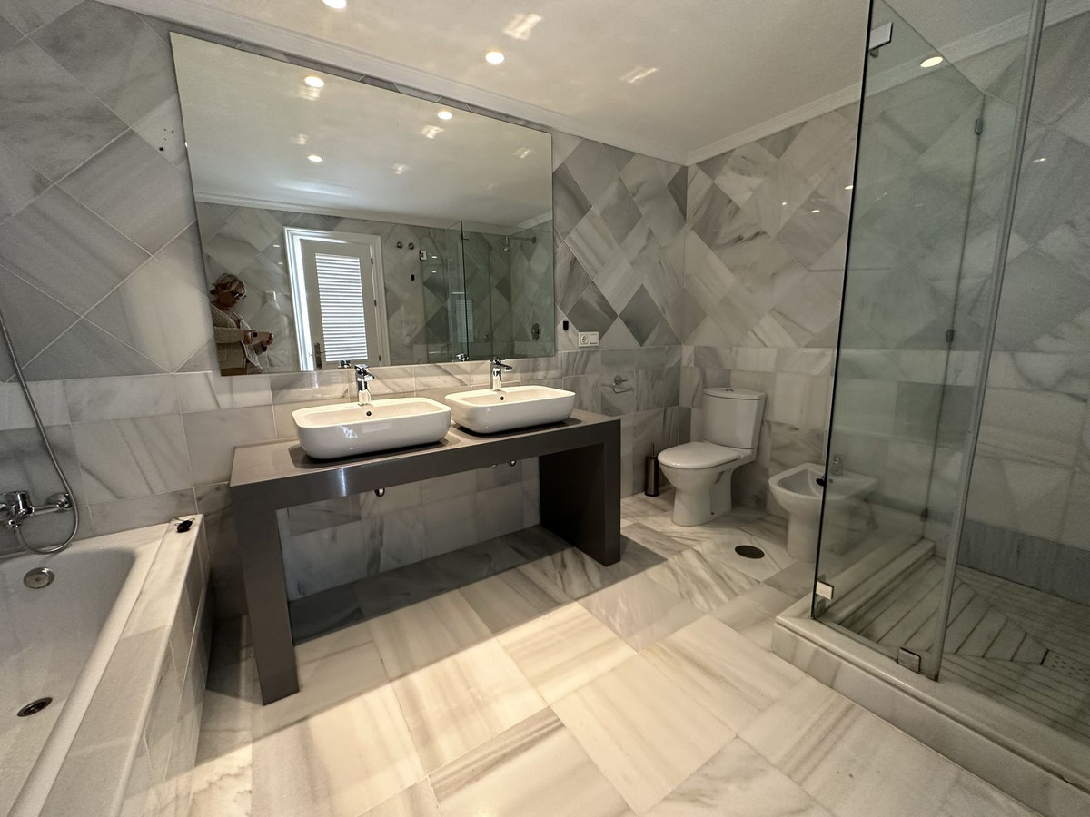 The south-west facing apartment in Benahavis comes with a large and secure underground parking space which is accessed via the elevator which arrives right outside the front door of the home. Opening the front door, a very welcoming and clean open space is the first impression, with the cleverly reformed kitchen space which has been opened up to integrate the living and dining areas with it in an American style. This allows for the maximum usability for families who wish to prepare food, eat and relax together. Further to this is the lovely private terrace. Here, doing and relaxation can be carried out with total privacy and views to the hills that roll down to the west coast of Marbella.