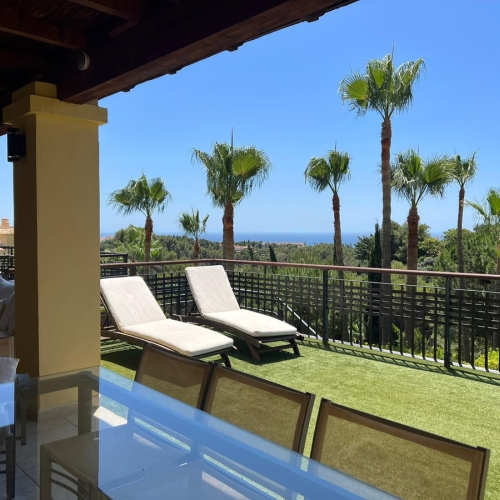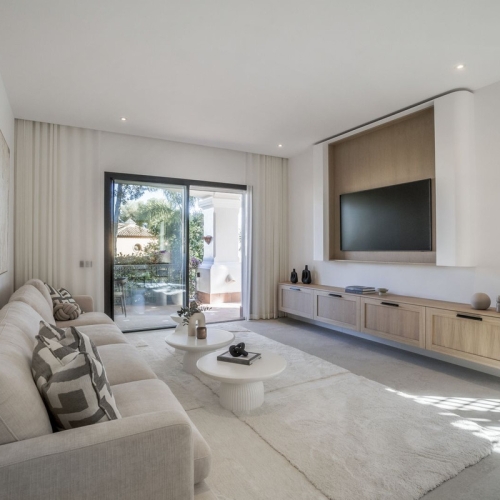 Located within the exclusive 5 star resort Puente Romano in the heart of the Golden Mile of Marbella, this unique apartment sports bespoke interiors combined with the highest quality standards. Effortless indoor-outdoor living with an expansive terrace overlooking the magical Japanese garden and only steps away from the golden beaches of Marbella. The property has a large south-east facing terrace area with direct access to the communal pool and the beach just a few steps away. Offering an open plan layout, a modern kitchen custom designed with oak cabinetry and integrated Gaggenau appliances. Complete with 3 sizeable bedrooms, each one exhibiting a refined contemporary design complete with its private ensuite bathroom. Private parking and storage room included.
