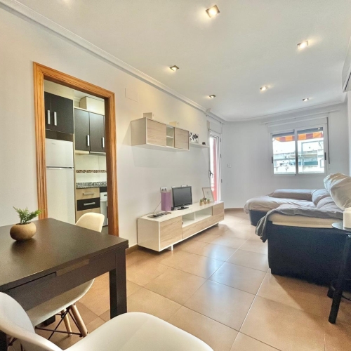 Welcome! This bright apartment is located in a quiet area of Torrevieja, close to the sea and surrounded by green areas. With its southeast orientation you can enjoy a spectacular sunrise while having breakfast on your private terrace or balcony. The property has a cozy room equipped with built-in wardrobes, furnished kitchen and full bathroom. It also has air conditioning for greater comfort throughout the year.This is your perfect opportunity if you are looking to acquire profitable holiday accommodation thanks to its excellent features: close to public transport (buses), schools and important medical centers such as hospitals; as well as various supermarkets, playgrounds and commercial buildings that will make daily life more comfortable.Can you imagine waking up every morning contemplating beautiful crystal clear waters? Come visit us now!