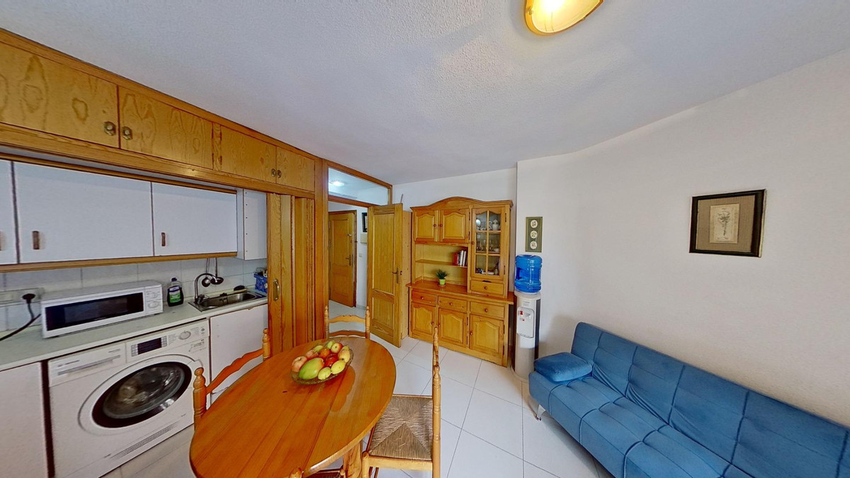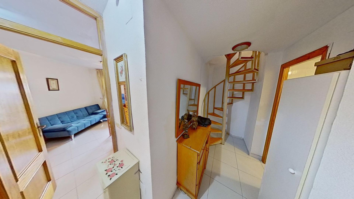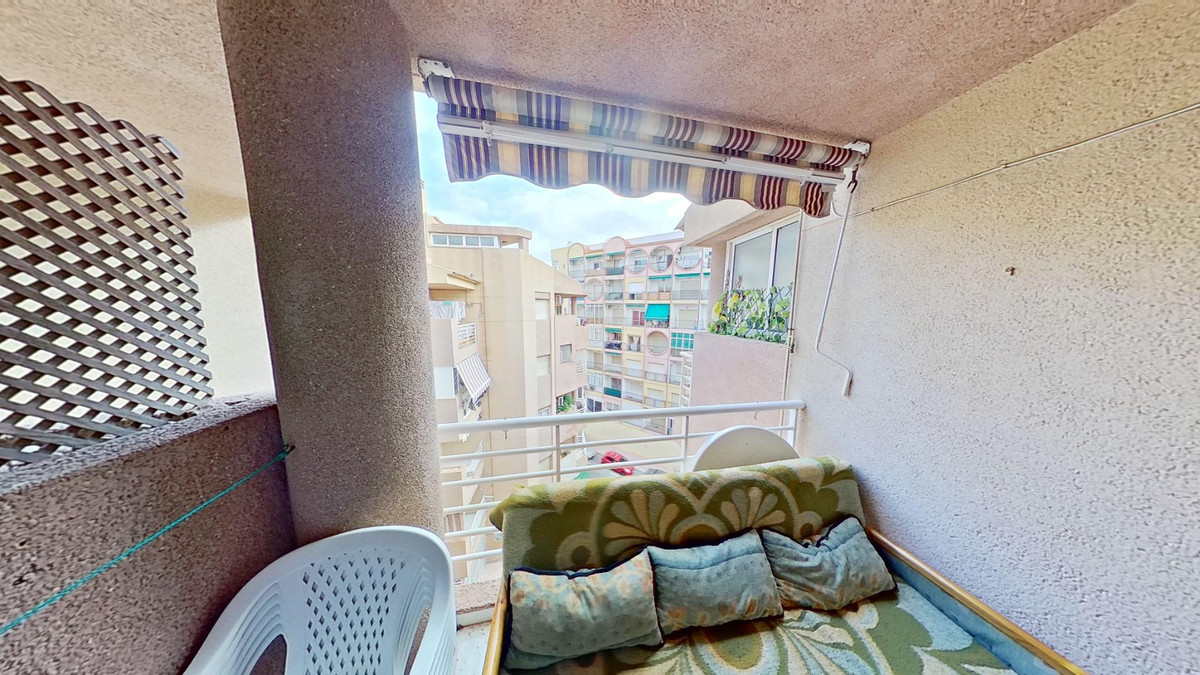 This beautiful penthouse is located in a privileged location, just 200 meters from Playa del Cura in Torrevieja. It has one double bedroom but there's potential to add another due to the spaciousness of the apartment. There's a large living room where you can relax after your days spent by the Mediterranean sea.The kitchen is fully equipped and features classic interior carpentry made of fine wood giving it an elegant and historic touch. Additionally, this impressive property not only boasts one but TWO full bathrooms! We assure you that you'll never have problems when hosting guests or surprise visitors.The views from both terraces are spectacular allowing for enjoyment during sunrise as well as sunsets over this unique coastline while admiring nearby trees breathing fresh air thanks to its northeast orientation which provides coolness inside regardless of external heat . The building also has an elevator so forget about climbing endless stairs after long beach days.
