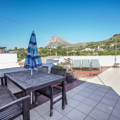We are pleased to offer this unusual property which was built in 1980, completely renovated in 2015 and which really needs to be seen to appreciate what it can offer to those with vision. The 366m² townhouse occupies the full 4 stories of the building and offers a choice of uses. It could be one large family home or two families could have a floor each – with either option having the possibility of running a business in a dedicated space on the ground floor, or it could be bought as a investment opportunity with the aim of receiving a rental income return of an estimated 6% per annum.The ground floor comprises 2 office spaces and a huge garage which could possibly accommodate 4 cars or a combination of cars and workspace. This area can easily be separated from the rest of the building if needed. From the front door, stairs take us to the first floor which comprises a large living space with a small balcony, a kitchen, an internal patio, two bedrooms and a family shower room. The master bedroom being a large open plan area with bath, shower, sinks and toilet. Both bedrooms have built in wardrobes and central heating. Again, this section of the property can be made separate from the other parts. The main staircase continues to the second floor which again offers a large living/dining area, again with small balcony, a kitchen, two bedrooms and a family shower room. The master is the same open plan design with en-suite bath and shower areas. Again, both bedrooms have built in wardrobes and central heating. From the living area, stairs rise to the third floor where there is a large space that could be used as further living accommodation or another bedroom with a separate shower room. There is also access to the very large roof terrace that offers views to the Montgo and distant sea views.This is a unique property which is not easily categorised in the traditional manner as being a townhouse or duplex apartment. It is a very large property where the living accommodation could suit one large family who want to live together or could be two independent areas where two generations could live separately in the same house. With a small amount of work each floor could offer independent rental income sources. Please contact us to arrange a viewing to see what this property can offer you.