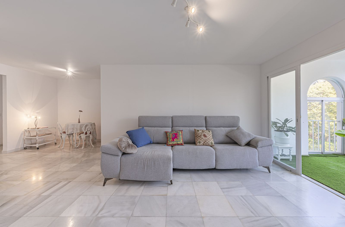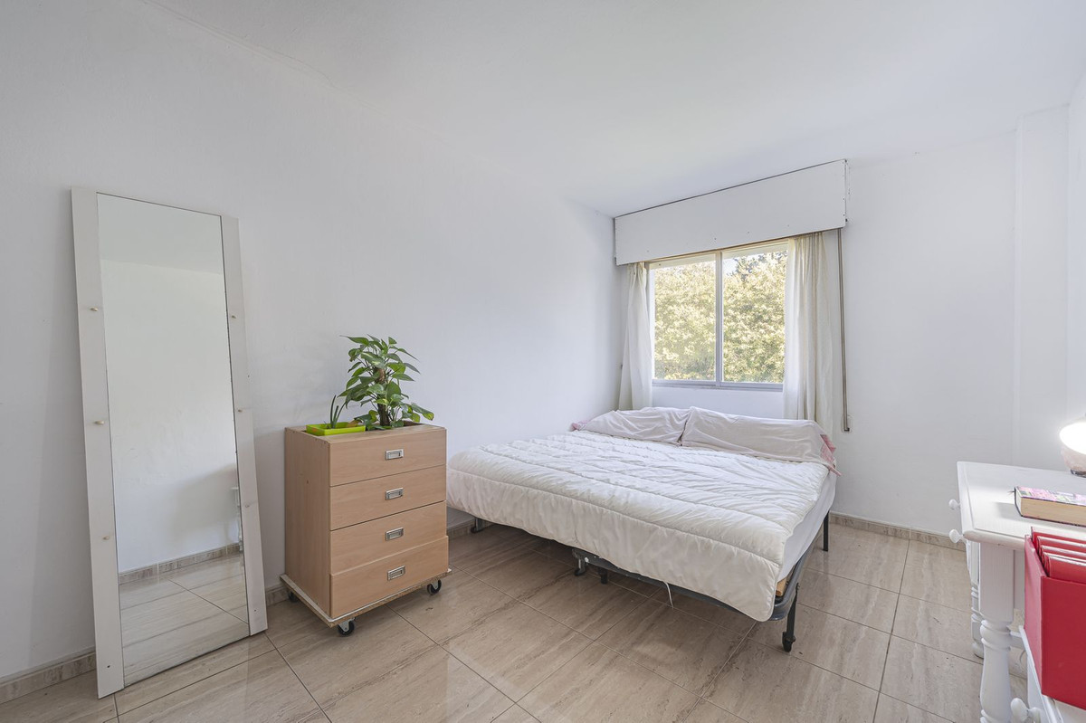 Spacious flat to refurbish in Nueva Andalucia, close to Centro Comercial Plaza and walking distance to Puerto Banus. Discover a unique option! A spacious flat, designed on one floor, which is characterised by its functional and comfortable layout. Upon entering the property, you will be greeted by a spacious entrance hall leading to an independent kitchen fully equipped with appliances and a laundry room. The living-dining room is bright and offers direct access to an enclosed terrace with open views. The flat has four generously sized bedrooms, all of them equipped with fitted wardrobes offering ample storage space. Furthermore, there are two complete bathrooms, some of them en suite. This property has many possibilities for refurbishment.
