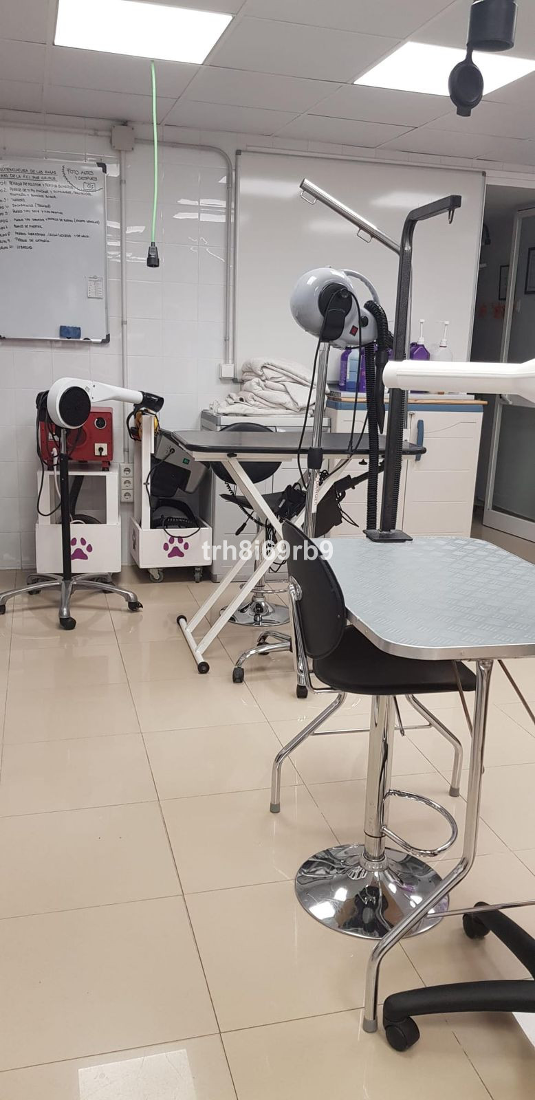 In terms of activity and volume of work, it is worth noting the low season (February, March, October and November) where around 10 dogs a day are groomed, and the high season here between 15 and 20 dogs per day. The business also offers a home pick-up service and have a SPA service with Ozone. In addition to offering the service of dog grooming, the current owner is registered for the teaching of the grooming profession and courses are given to students who want to learn the profession.
