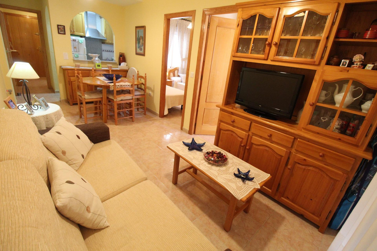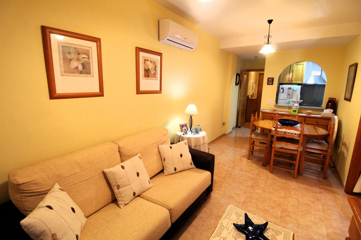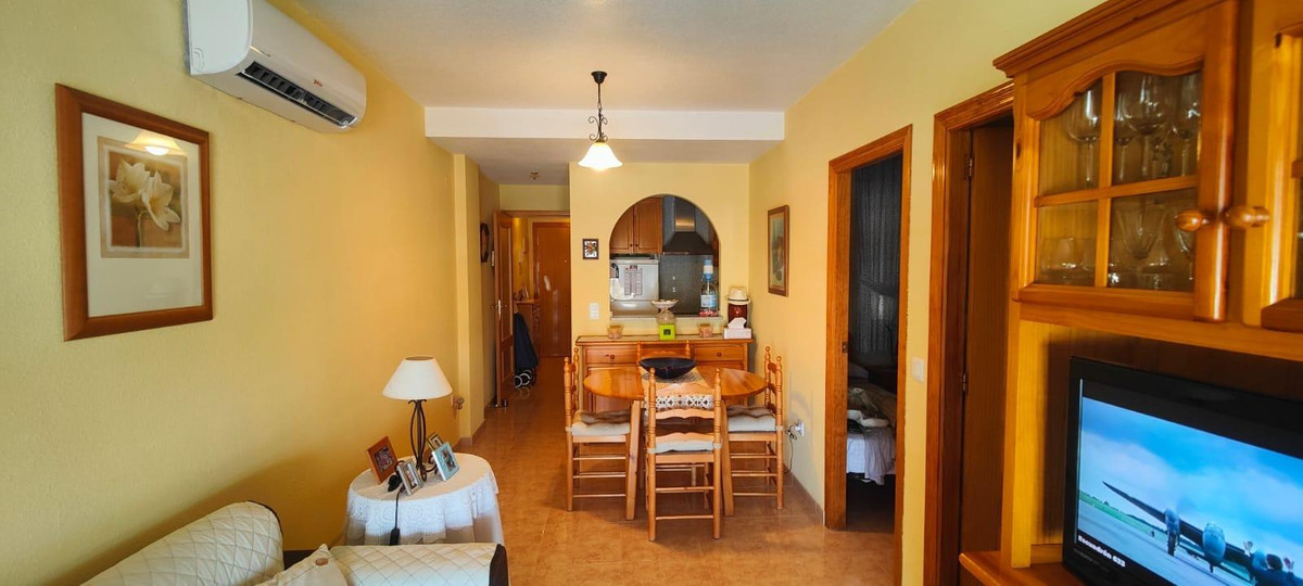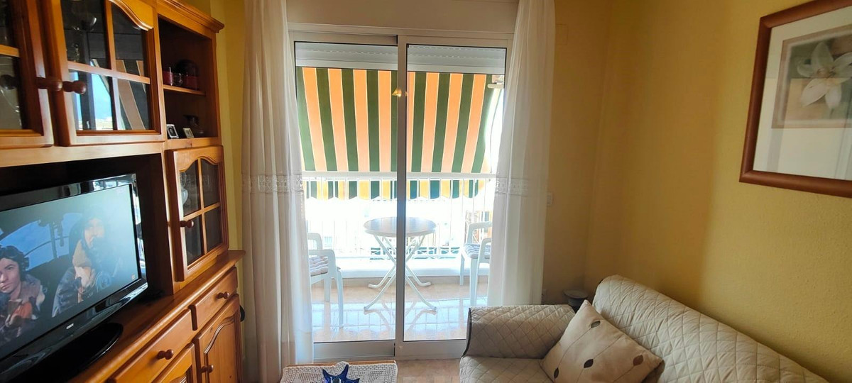 In an unbeatable location, this beautiful apartment has two double bedrooms equipped with furniture, ready to move into. The interior decoration is elegant and comfortable, while the stoneware floor adds a modern touch to the space. With PMR access via elevator to the upper floors of the building.Enjoy the shared solarium or relax by the large communal pool surrounded by a pretty garden with palm trees after taking a refreshing swim under the warm Mediterranean sun.