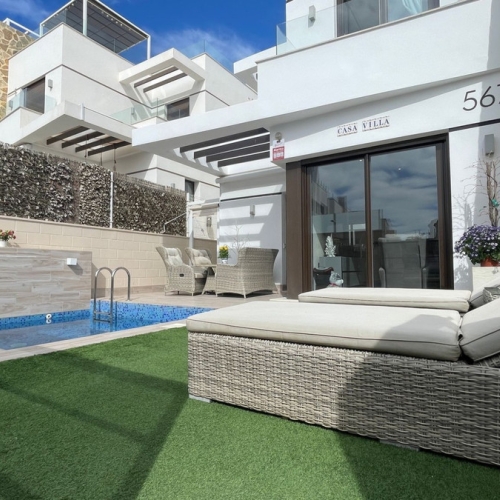 Only 7 minutes to the nearest beaches at La Zenia and Campoamor and 5 minutes drive to the golf courses at Villamartin, Campoamor, Las Ramblas and the new Las Colinas.