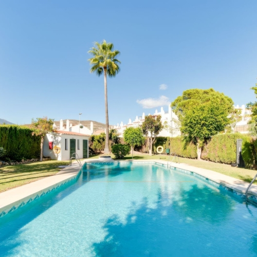 With the added convenience of a garage, it offers practical living in a well-maintained community with a pool. Experience a relaxed lifestyle in this charming townhouse, perfectly situated for enjoying the best of Marbella.