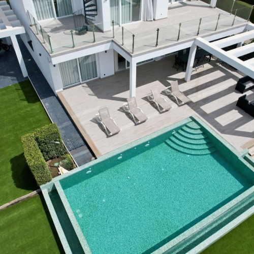 The house is separated into three apartments (with different deeds), a large basement, swimming pool and irrigated field, currently used for fruit trees.