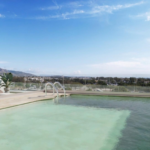 The development in San Pedro de Alcantara is made up of 35 homes with 2 and 3 bedrooms, with duplexes with terraces-solariums. Garages in the basement and commercial premises on the ground floor, in a building with avant-garde architecture, with first-class qualities and an exceptional location in the heart of the Costa del Sol.