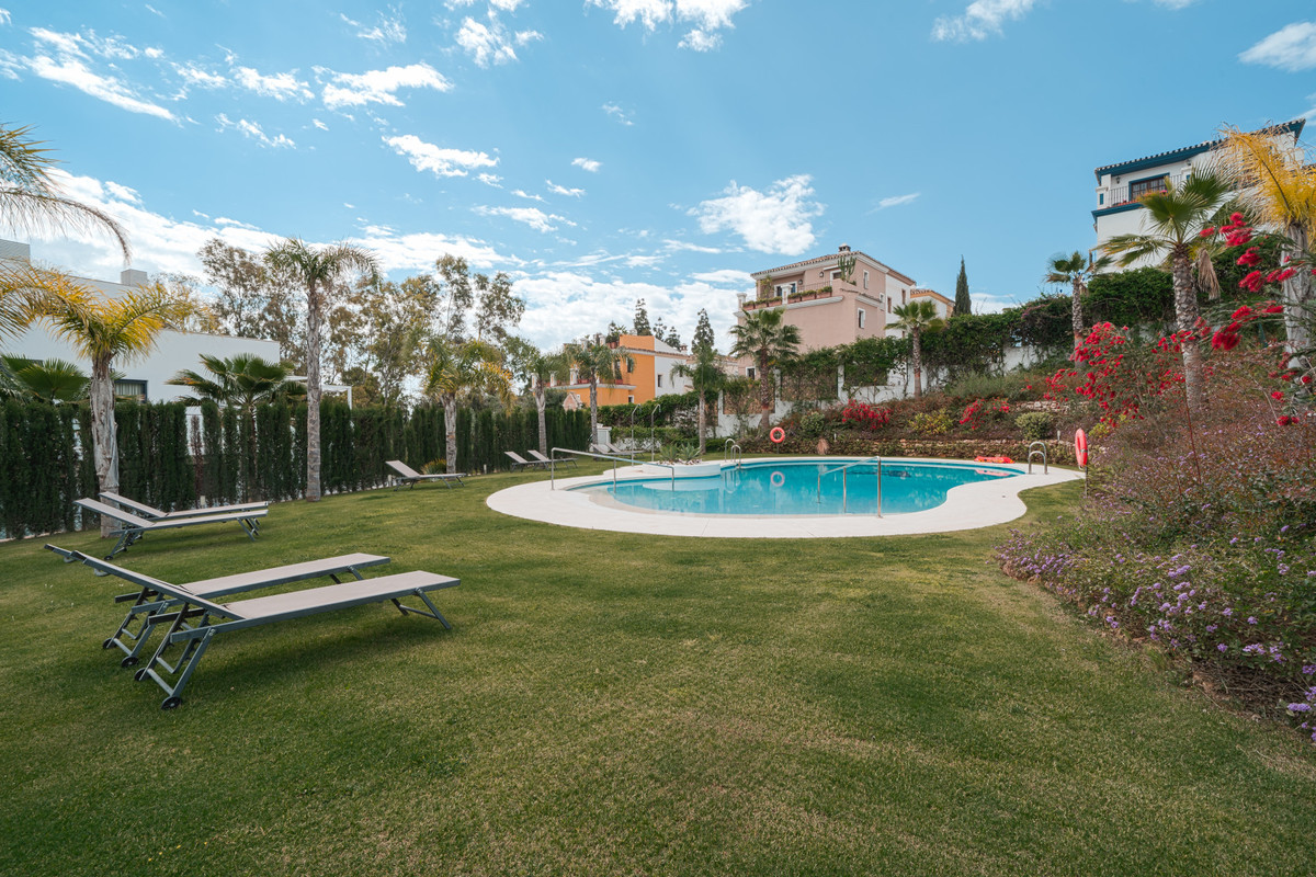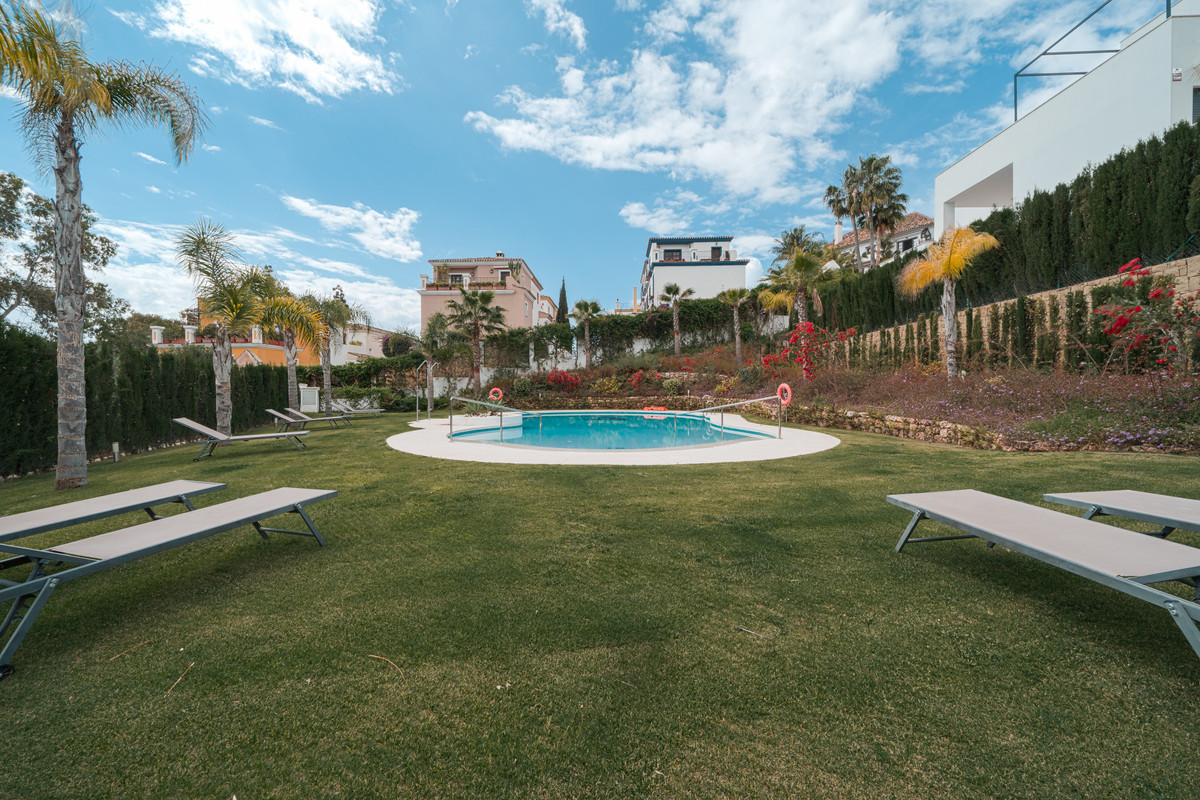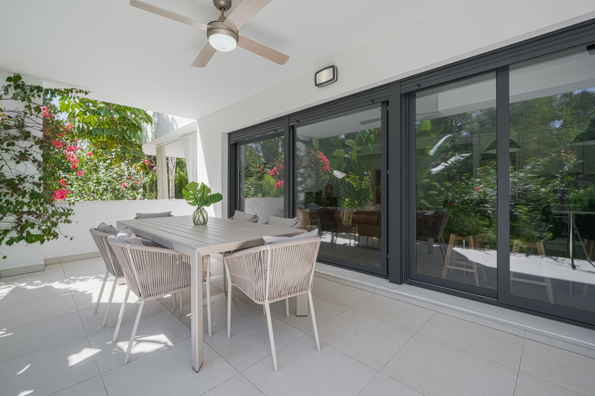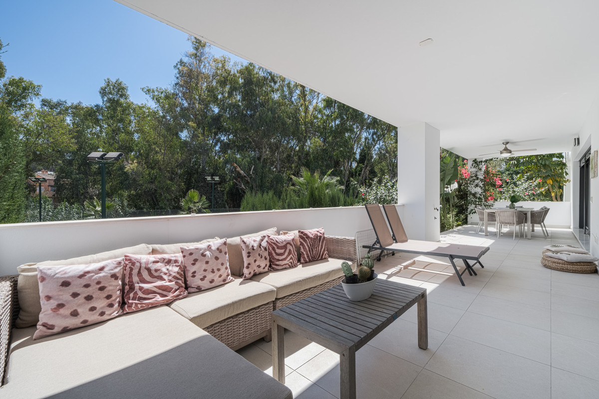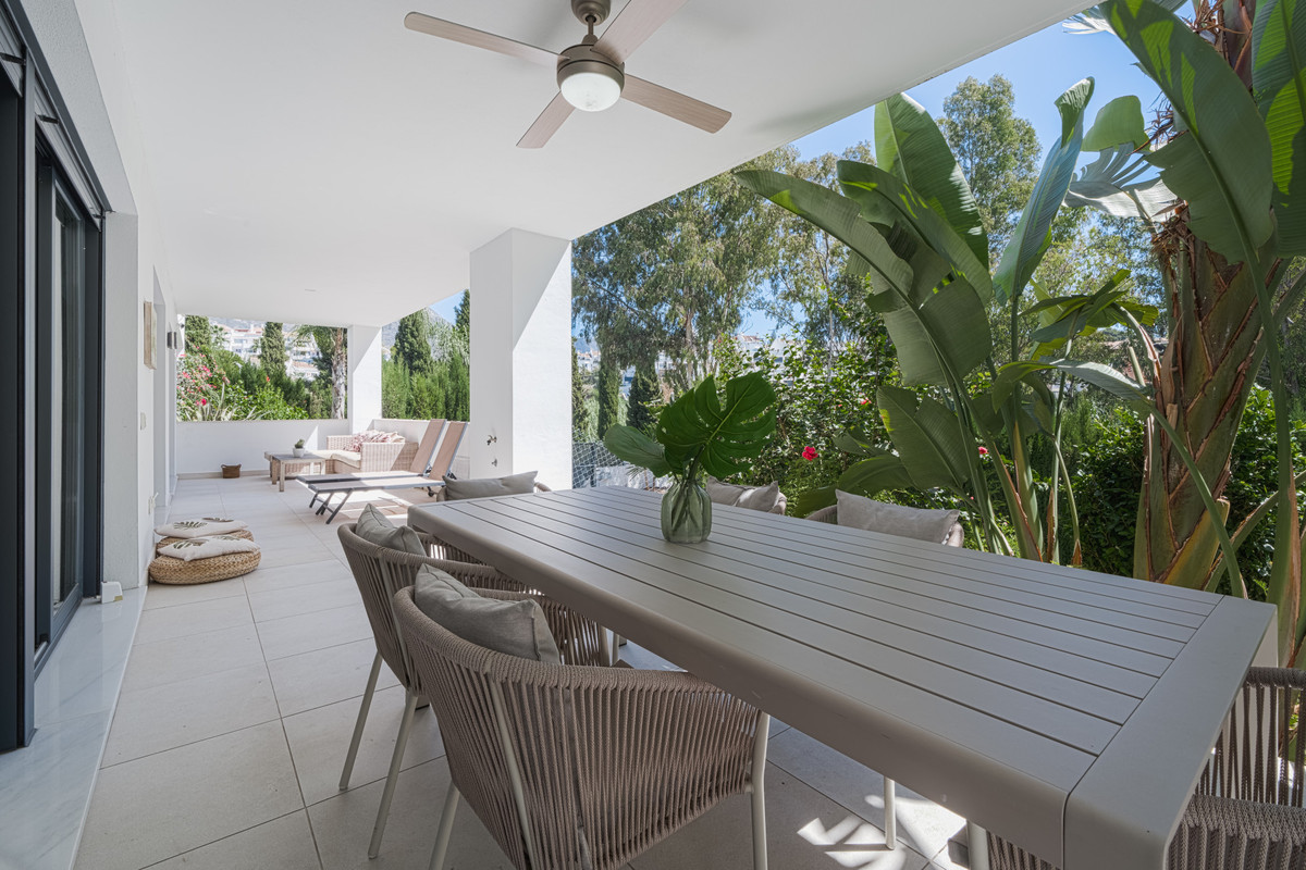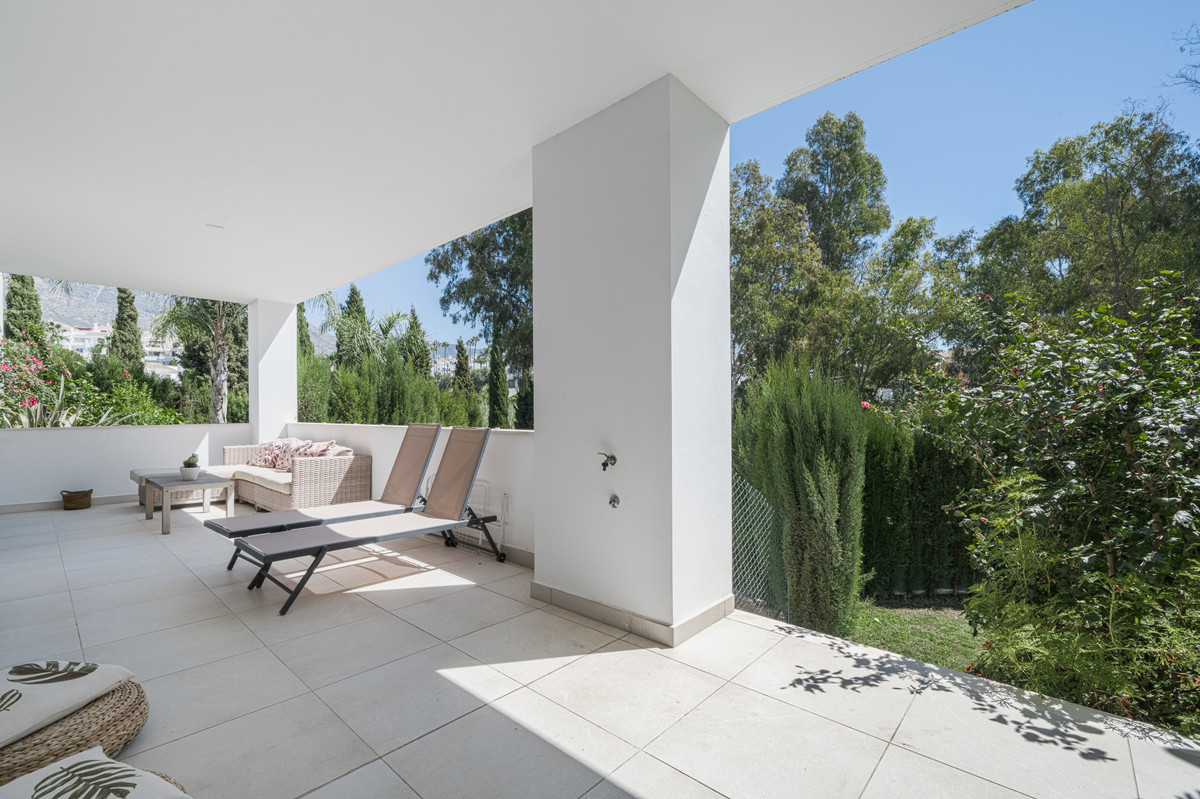 Spacious ground-floor apartment in Nazules, a modern residential complex in Altos de Puente Romano, a prestigious area on Marbella's Golden Mile situated only 5 minutes' drive to the beach and the famous Puente Romano Beach Resort and Spa and 7 minutes' to Puerto Banús.