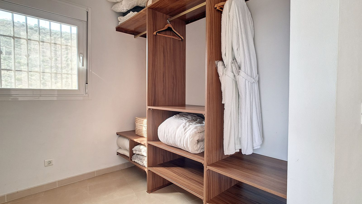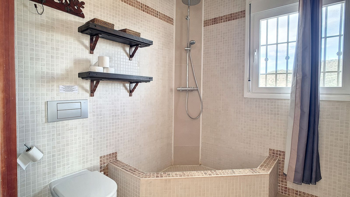 The villa offers a living room (sitting and dining area) with open-plan kitchen. On the ground floor, the villa offers 2 spacious bedrooms, each with a private bathroom, and a storage room with a washing machine and linen storage. A beautiful staircase in the lounge takes you to the first floor that offers you a full private room, a spacious bedroom with a lounge and relaxation area, an ensuite bathroom with bathtub/shower and a dressing room to say hello. The terrace has breathtaking views of the surrounding mountains and the sea.