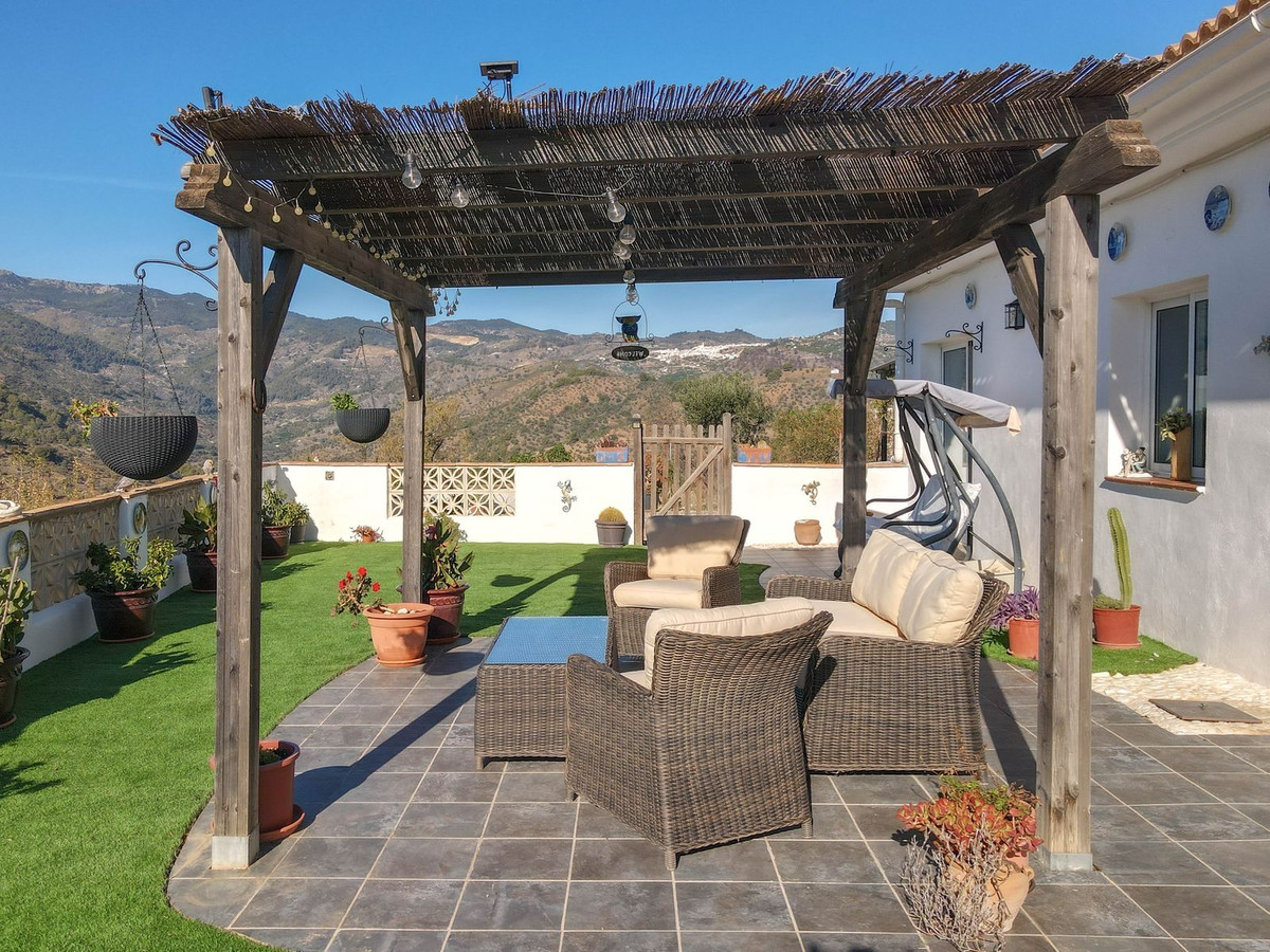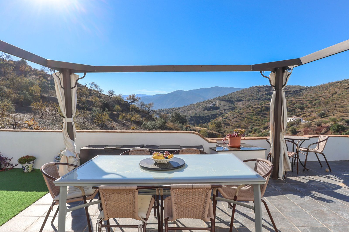 A shaded terrace to the rear of the property welcomes you a necessary cool spot during the summer months. To the right is a separate utility room. Entering into the property you are drawn to the views that are framed by the patio doors and a window to the side aspect framing the view of the village of Yunquera in the distance.