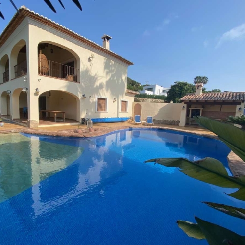 Newly built luxury villa in Moraira, Ibizan style, located in the Sabatera area, a distance from the center of Moraira and the beach of 2 km. On a flat plot, the house is distributed on a single floor, differentiating the two areas day and night. Upon entering the property, we find on the right a large living room, along with a modern kitchen with breakfast bar and laundry, thus creating a completely open space. The night area is reserved on the left side of the villa, where we find 4 bedrooms, one en suite, along with two additional bathrooms.