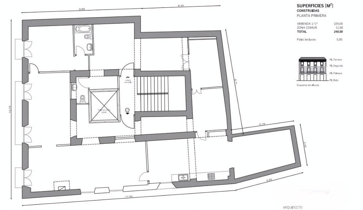 This building is divided into a total of 4 floors; That is, a ground floor plus 3 floors.