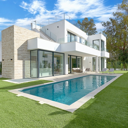 MAGNIFICENT DETACHED VILLA WITH BEAUTIFUL SEA VIEWS! Located in a URBANIZATION ON THE BEACHFRONT LINE, ONLY 2 MIN FROM THE BEACH ON FOOT AND 7 MIN BY CAR FROM THE HISTORIC CENTER OF ESTEPONA. It is very well connected on foot through the beautiful coastal path and is close to supermarkets, schools and the new High Resolution Hospital of Estepona. It has a large garden area and spacious terraces with beautiful panoramic sea views, in addition, the property is surrounded by gardens and houses with the attractive design style of the famous architect Aubrey Marcus David and has SOUTHERN ORIENTATION. The house is distributed over three floors. The main entrance to the plot leads to a porch where the entrance of the house, which has a living area on two levels that enjoy great light, beautiful views of the Mediterranean and direct access to the terrace bordering the garden and a large kitchen, on the top floor and the first floor are the bedrooms and bathrooms. The house was renovated a few years ago and has been well maintained. The urbanization is very well maintained and has artificial grass tennis courts, gardens, 6 communal swimming pools, and covered parking areas within the grounds. WE HIGHLY RECOMMEND YOUR VISIT!
