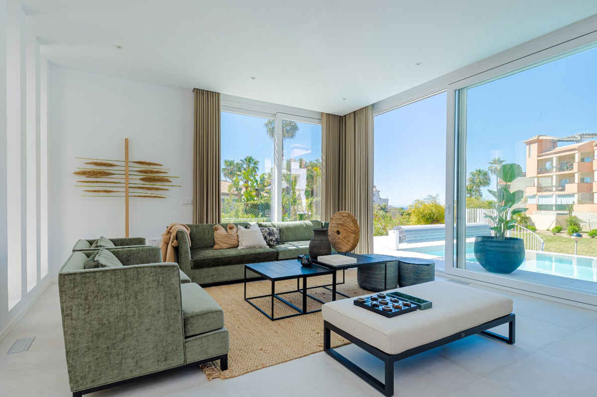 This unique contemporary 9-bedroom property consists of TWO SEPARATE UNITS which are adjacent to each other on two adjoining plots. The properties could easily be joined together by installation of a lift or staircase if desired. Situated in a luxury, secure gated community, just 1.2 km (a 15 minute walk) from the beach, shops and restaurants in Riviera del Sol and Calahonda. This new development of 12 low-rise villas has been constructed in a contemporary style using very high-end materials.