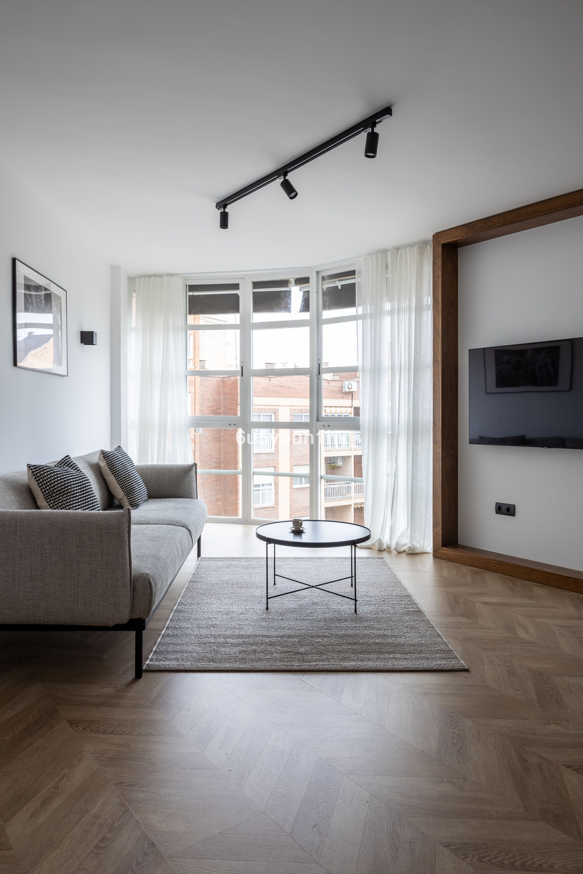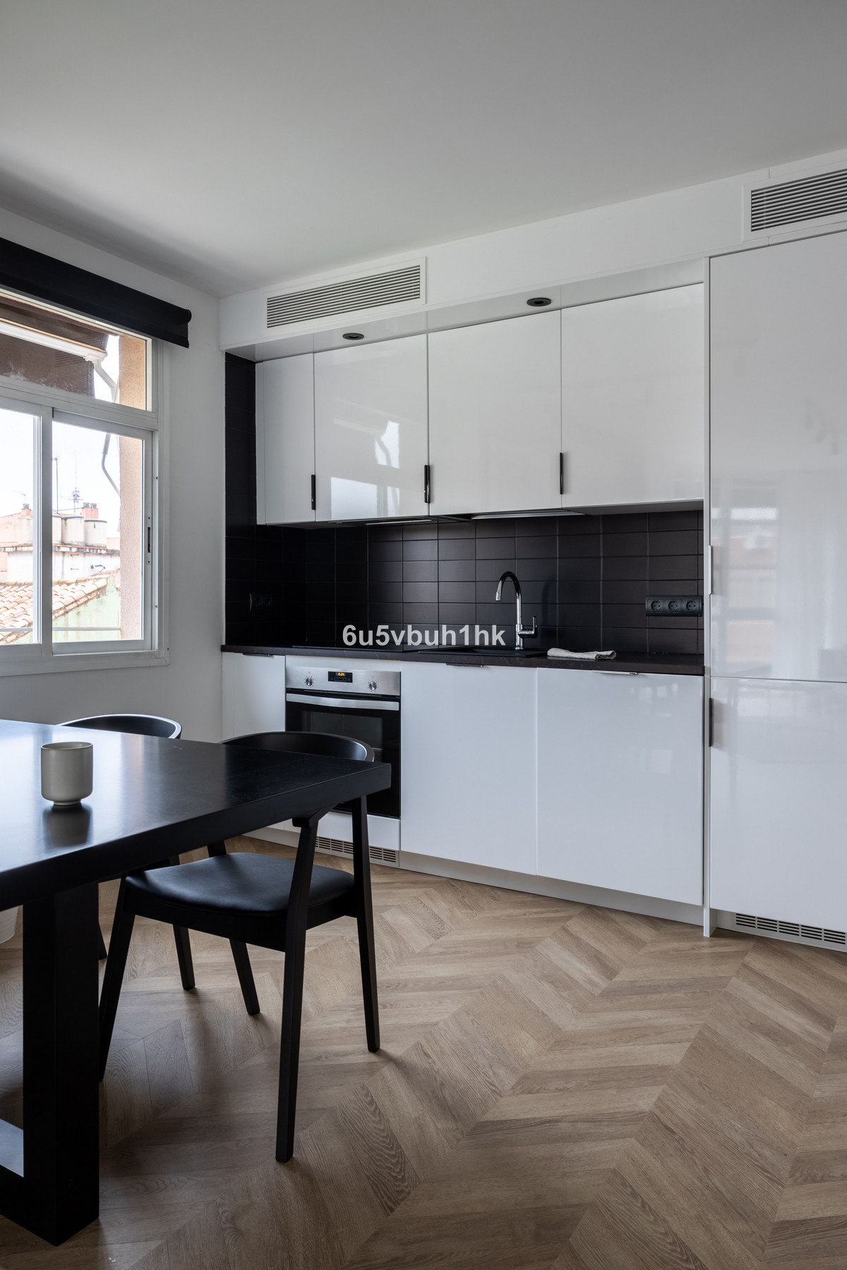 Situated on the 4th floor, it boasts an outward-facing view and counts with an elevator. The layout includes a spacious living and dining area, a fully equipped open kitchen, three spacious bedrooms, an exterior bathroom and a parking space. Additionally, the property is equipped with centralized air conditioning and offers access to a communal terrace.
