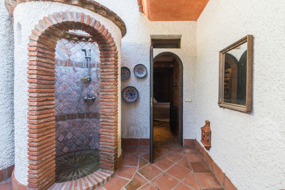 This Andalusian-style villa, designed by a renowned German architect in 2001, seamlessly blends traditional charm with modern comfort. Nestled just a quick two-minute walk from the beach, the villa features a delightful garden with fruit trees and ancient olive groves. The spacious terrace, divided into a barbecue area and a relaxation zone, provides the perfect setting for outdoor enjoyment.