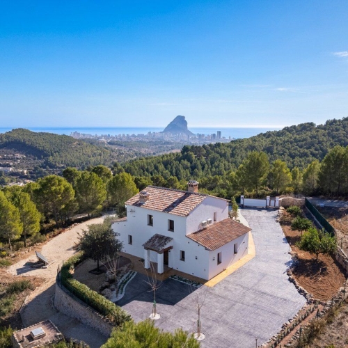 Villa for sale in Costeres / La Merced a quiet residential area of Calpe just 800 meters from the beach, close to cafes and restaurants, supermarkets and the town center.~ The property is distributed over 2 floors, the upper floor has a bedroom with bathroom and a large terrace with wonderful views of the sea and the Peñón de Ifach.~ The lower floor has a large living/dining room with direct access to the terrace, a fitted kitchen, a bathroom and 2 bedrooms.~ Extras are air conditioning, underfloor heating, PVC windows and doors with safety glass. The house has its own well.~ There is a garage and parking for several cars