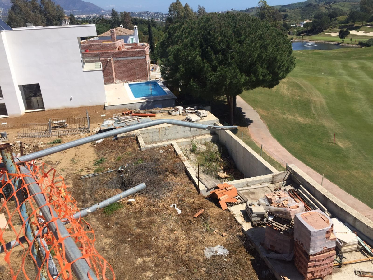 INVESTMENT OPPORTUNITY. This unfinished golf front villa overlooking the fairways and lake of hole Nº6 of Asia course in La Cala Golf resort, is an excellent opportunity. Under construction, for sale as the villa is with an estimate cost to complete the construction of about 600.000€. The villa will welcome you with an entrance hall giving access to large living and dining room leading to a sunny terrace with wonderful golf views and with access to the pool area, very large open-plan large kitchen, 2 double bedrooms, 1 family bathroom + 1 guest toilet on the main floor. The top floor is home to the impressive master suite with vaulted ceiling, wall-to-wall bay-window, private terrace + balcony with commanding views, large en-suite bathroom with bath and walk-in-shower. The 160m2 of the lower floor offers a wide range of possibilities for converting it to suit your needs, such as 2 bedrooms, 1 bathroom, 1 gym or TV room, 1 laundry room,+ plenty of storage space... Large L shape infinity swimming-pool overlooking the fairways, platform prepared for a beautiful pool house, large space for landscaped garden. This could your perfect house. Contact us