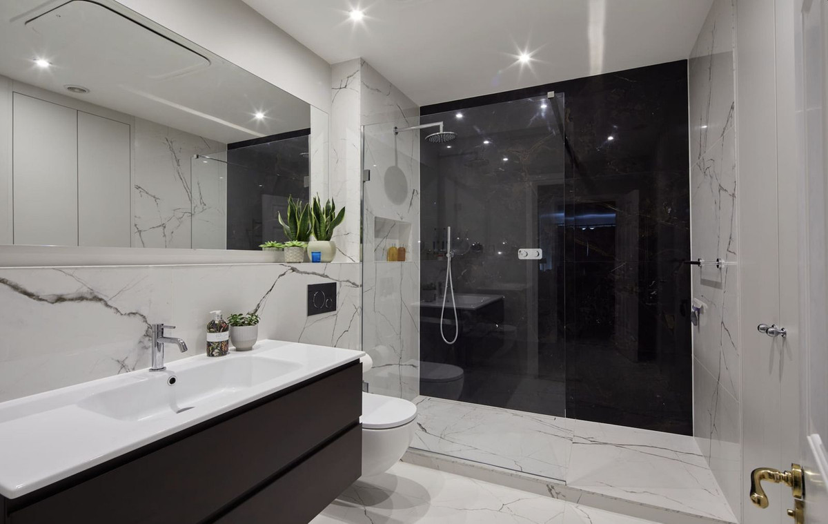- Bathrooms walls with COVERLAM wall plates of 1200x2700