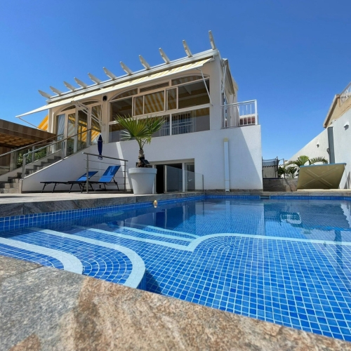 This stunning villa is located in the sought-after area of Montezenia, offering beautiful sea views and a tranquil setting. The property has been fully renovated and boasts 4 double bedrooms, 4 single bedrooms, 2 bathrooms, and 3 toilets. The spacious living areas include a fully equipped kitchen with southwest orientation and laminate flooring throughout. Additional features such as central air conditioning, built-in wardrobes, balcony, barbecue area,gas heating system,and double garage make this an exceptional home for those seeking luxury living.The outdoor space includes a private swimming pool,pool comunity ,sauna,solarium,balcony,Patio,garden where you can enjoy the Mediterranean climate all year round.In close proximity to shopping centers,a variety of parks supermarkets,making it ideal for families or holiday rentals.Garage parking included.