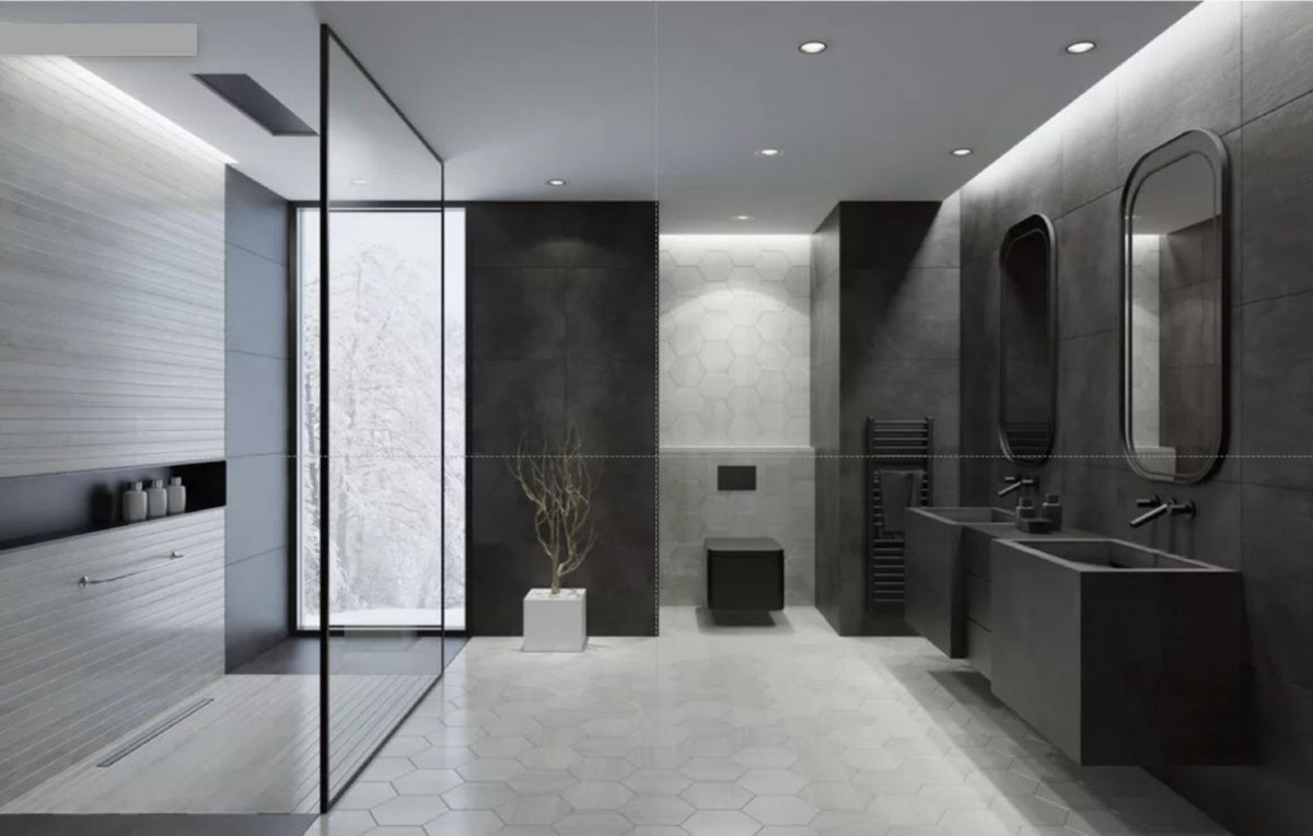 - Bathroom walls with COVERLAM plates (GRESPANIA) 2700X1200 (Colour to choose)