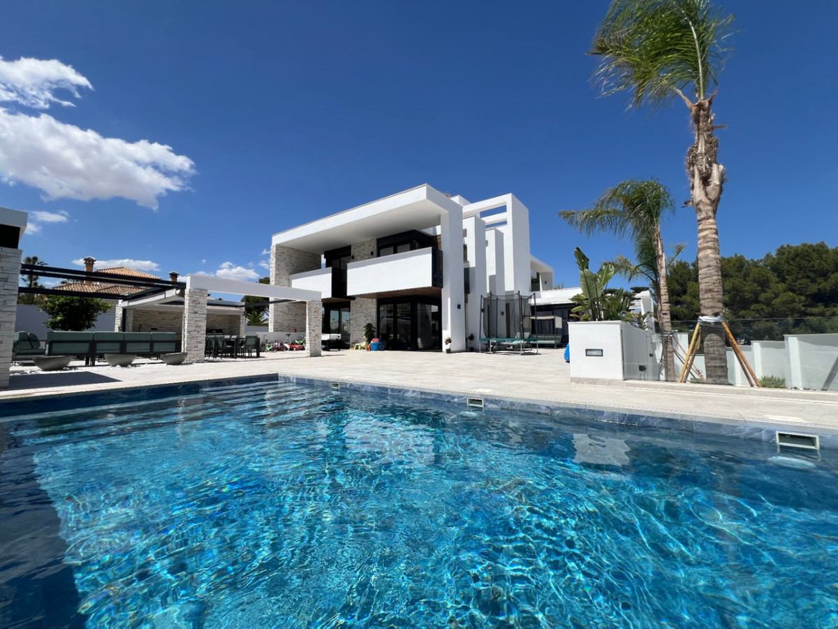 We are delighted to present this stunning, one-of-a-kind villa located in the most exclusive area of Orihuela Costa—Villamartin Golf. This exquisite residence features four spacious bedrooms and five luxurious bathrooms, encompassing a total of 315m² of beautifully designed living space, plus an 80m² under-build. The villa is situated on a generous 1,008m² plot, perfectly positioned to offer both privacy and breathtaking views.