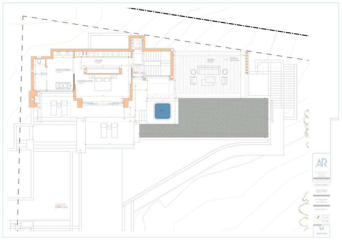 Lastly, the upper level consists of the Master bed- & bathroom, with an indoor area of 84m2 and adjoining 127m2 terraces. From these terraces you can enjoy your built-in Jacuzzi, semi-covered chill-out area through a built-in bioclimatic pergola.