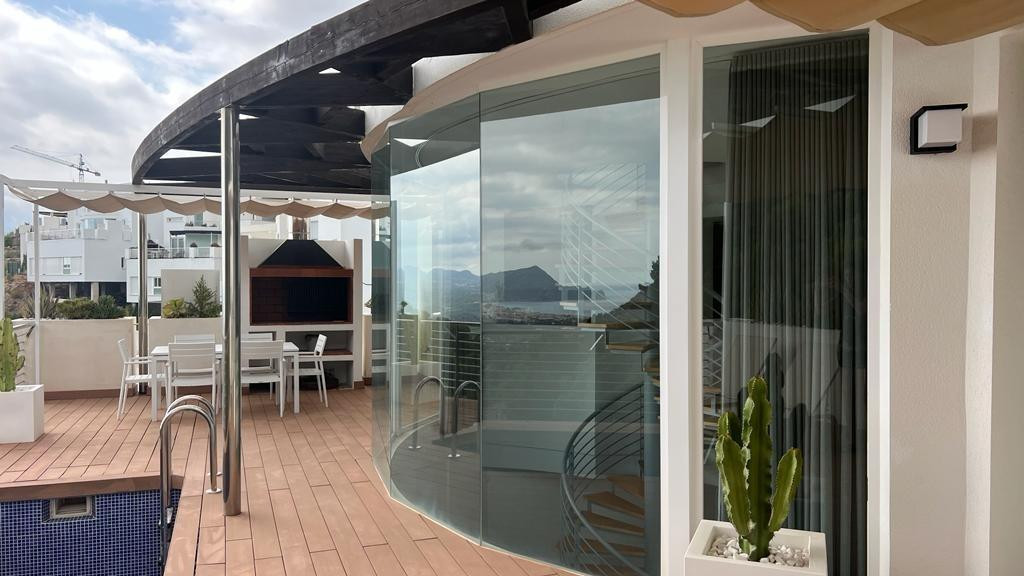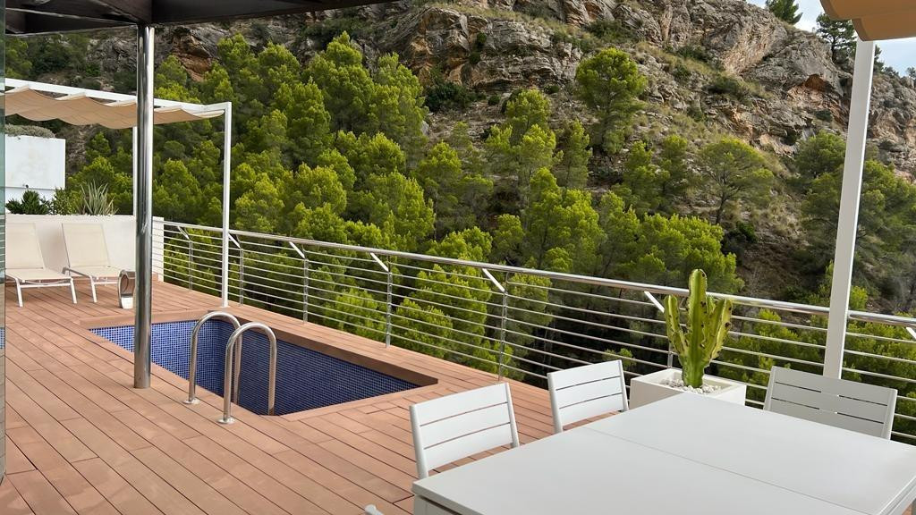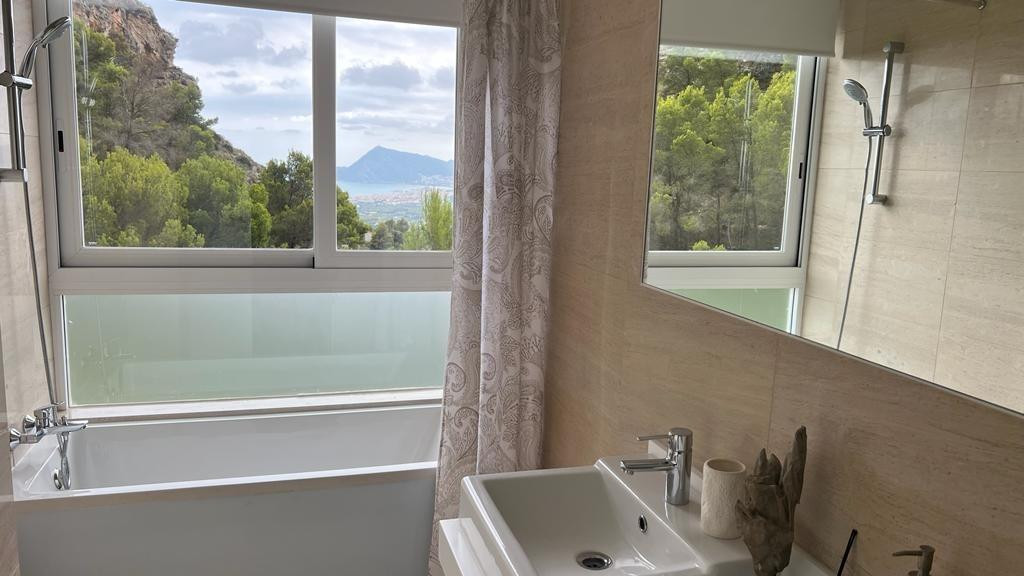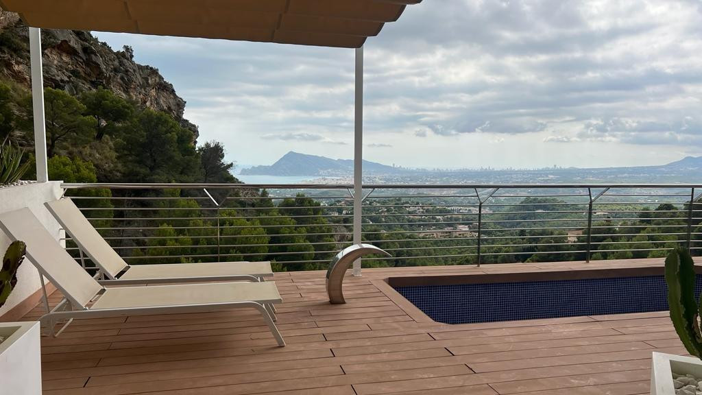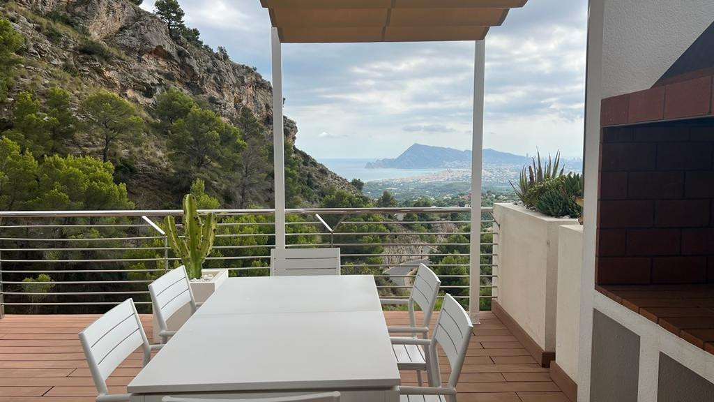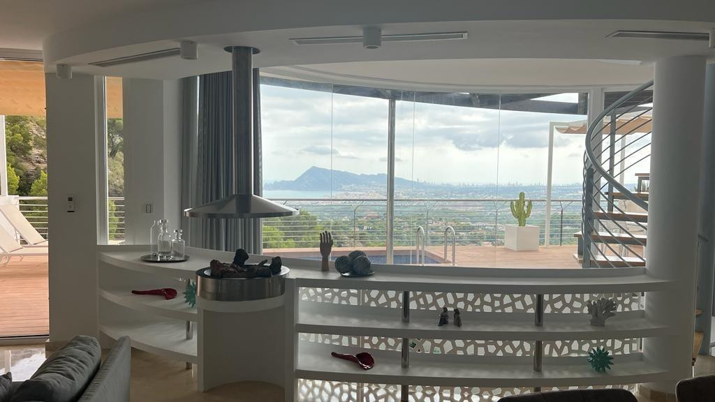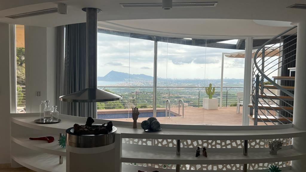 Elegant villa in Altea la Vella with sea viewsDiscover this residential gem located in the quiet and exclusive area of 'Alteart'. Just 50 minutes from Alicante-Elche Airport and 1.5 hours from Valencia Airport, this villa offers the perfect location for quiet family life. In addition, it is just 10 minutes from the beautiful beach of Altea.**Featured Features:**- 3 Floors- Private garage with space for 2 vehicles- 4 Bedrooms- 4 Bathrooms- Elevator- Large Terrace with Balcony- Private pool- Private BBQ Area**Exceptional Amenities:**The house has central heating and air conditioning to guarantee your comfort in all seasons. Fully furnished with new and modern furniture, this property offers an elegant and welcoming space.**Strategic location:**The proximity of several schools in the area makes this chalet the ideal choice for families. Furthermore, for foreign buyers, the acquisition of this property offers the opportunity to obtain a residence permit as an investor.**Interior distribution:**Main floor- Kitchen fully equiped- American-style living-dining room- Access to the large terrace with views of the sea, Benidorm and Altea. The terrace includes a private pool and barbecue area.Second floor- 3 Bedrooms with private bathrooms- Children's areaLow levelBalcony accessGarage accessService area with washer and dryerThis property is a perfect fusion of comfort, style and location. Don't miss the opportunity to call this chalet your home! Contact us for more details and a visit.