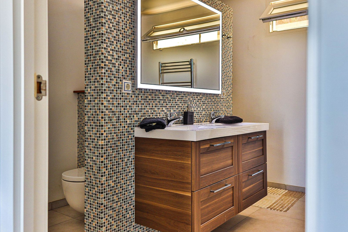 On the ground floor, there are 2 bedrooms and 2 bathrooms. Additionally, the property includes a 44 m2 guesthouse (ask for pictures) with a separate entrance, comprising a kitchen, living/dining room, bedroom, bathroom and a small terrace.