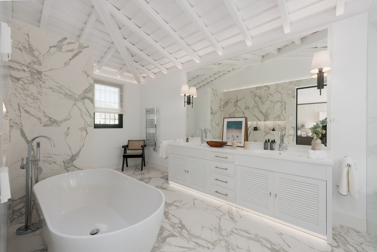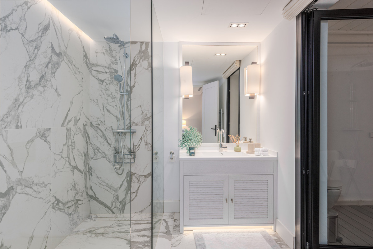 The principal bedroom suite is both sumptuous and extensive, comprising a large private lounge, a bedroom area, as well as a luxuriously appointed bathroom with twin basins, a walk-in shower and a standalone bathtub. There are also two separate, extensive dressing rooms with bespoke carpentry as well as a large private terrace with jacuzzi..