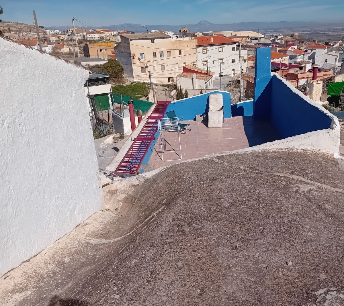 The outside gardens offer different areas to relax- including a roof top solarium. From the back garden, we enjoy the panoramic views over the mountains' and the town. This property is unique in so many ways, being only a few minutes' drive from the thriving town of Baza, close enough to walk to, however being private and not overlooked.