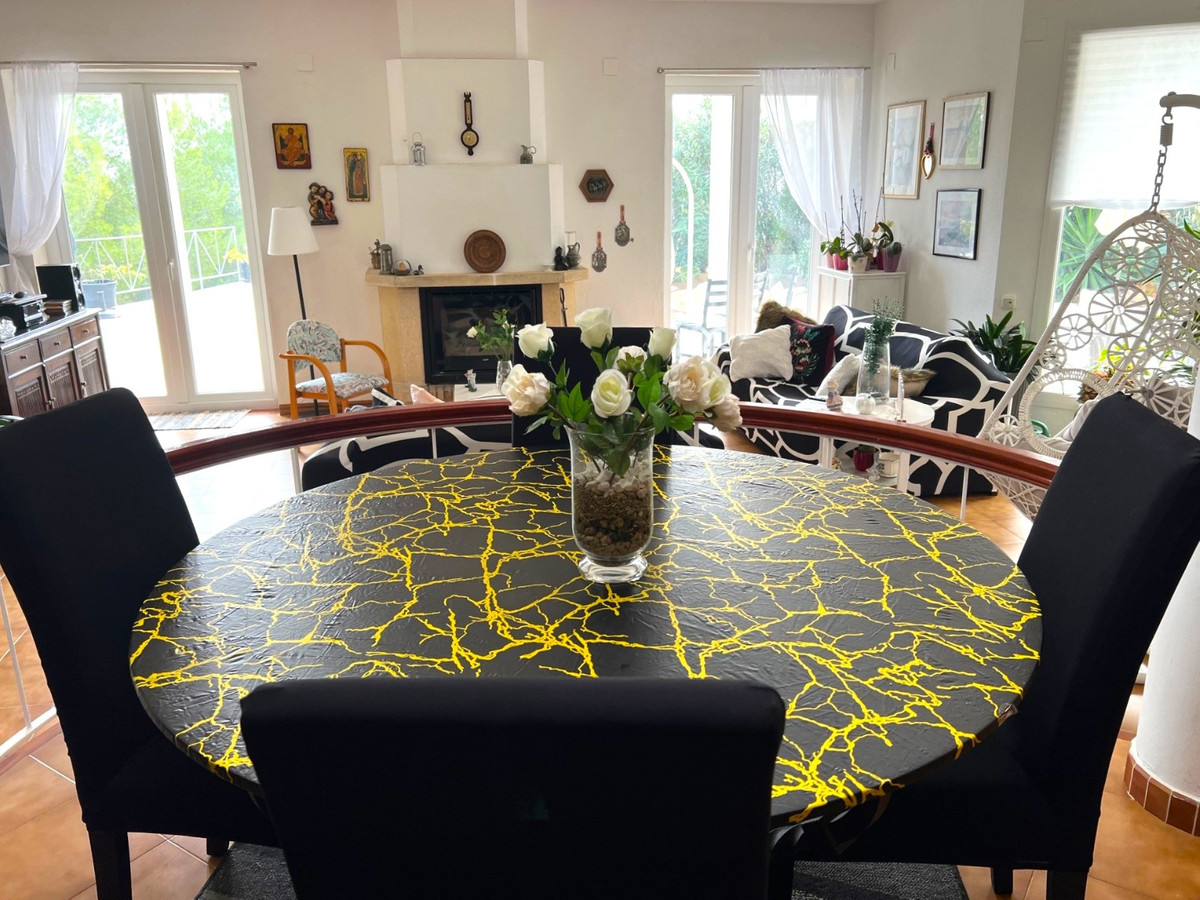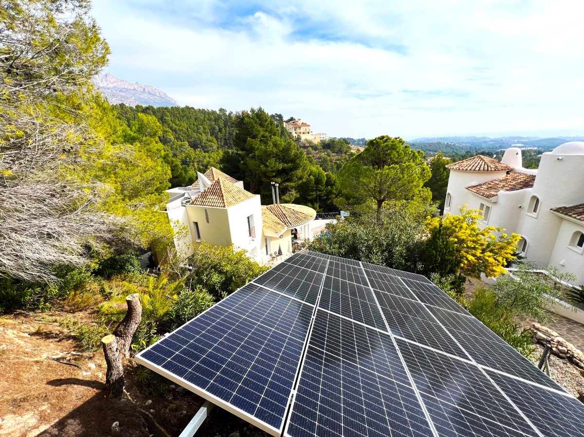 This villa is located in a very quiet area only a few minutes drive from Altea la Vieja and a few more from Altea. Close to basic necessities and the Don Cayo golf club. With stunning open views to the bay of Altea on its more than 1.000 meters of plot, it offers large gardens, barbecue area, private pool, fantastic terraces and 16 solar panels installations that supply the entire property. Distributed over 2 floors with spacious rooms and lots of natural light thanks to its orientation towards the sea. On the main floor it has a large double height living dining room with fireplace and access to its terraces, an independent fully fitted kitchen with laundry room and access to the exterior of the property, a master bedroom with en suite bathroom and a guest toilet.On the 1st floor it has 2 double bedrooms, office room and 1 complete bathroom. In addition to a comfortable terrace with sea views. The property has a lovely large driveway with space for more than 4 cars. the villa comes equipped with underfloor heating, air conditioning in all rooms, beautiful garden, private pool and a fantastic terrace.It's located 4 km from the town, 7.5 km from the beach, 5 km from the highway and 73 km form the Airport of Alicante.