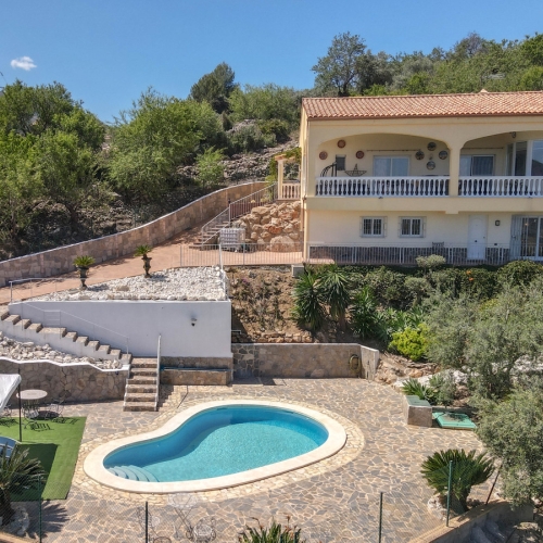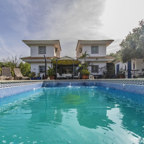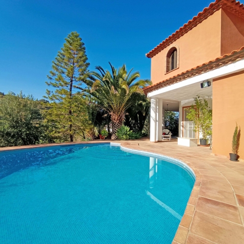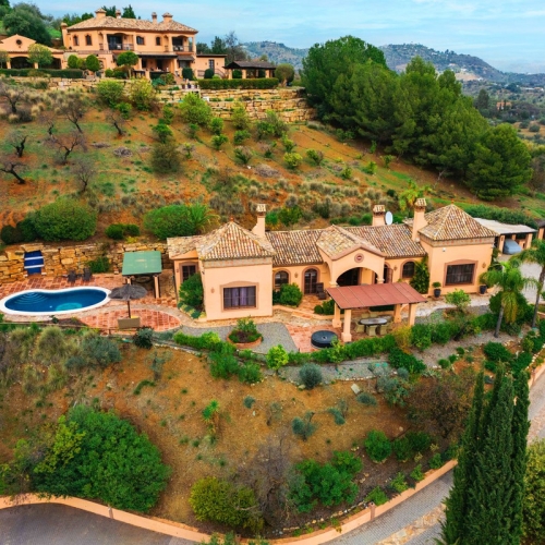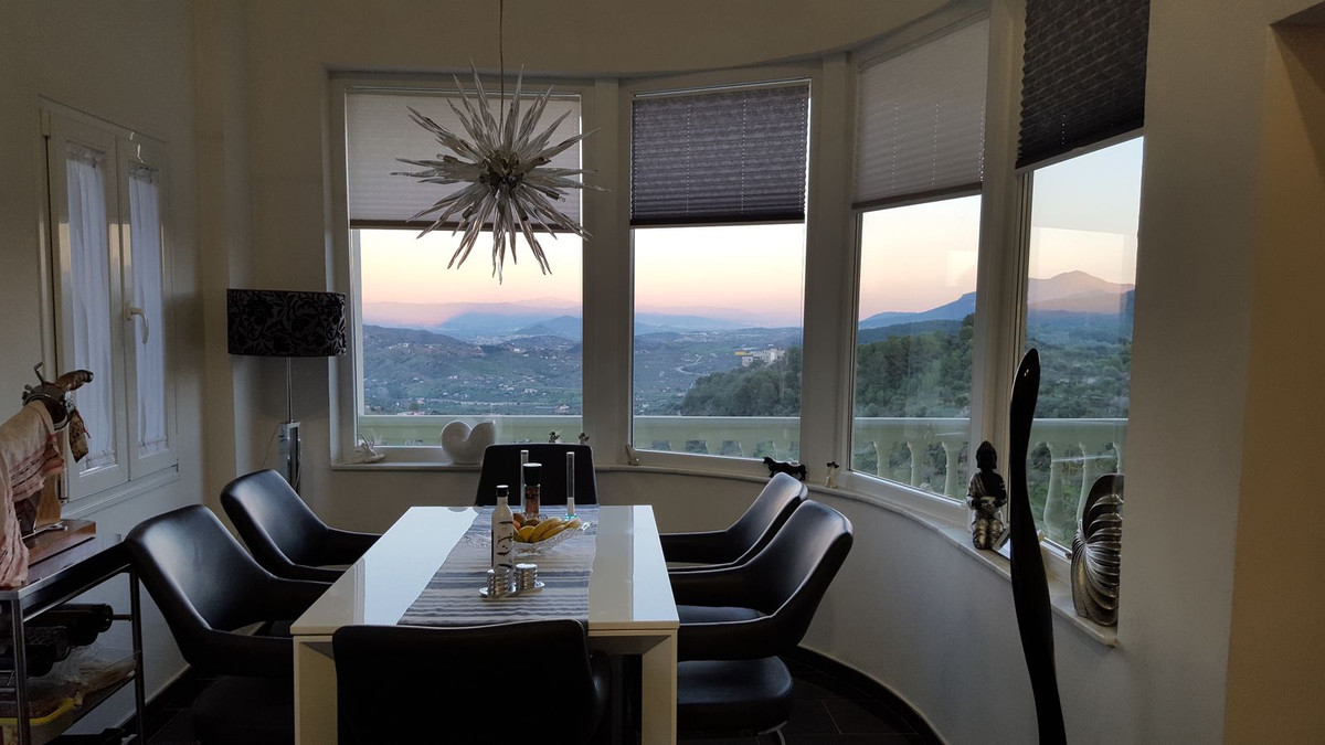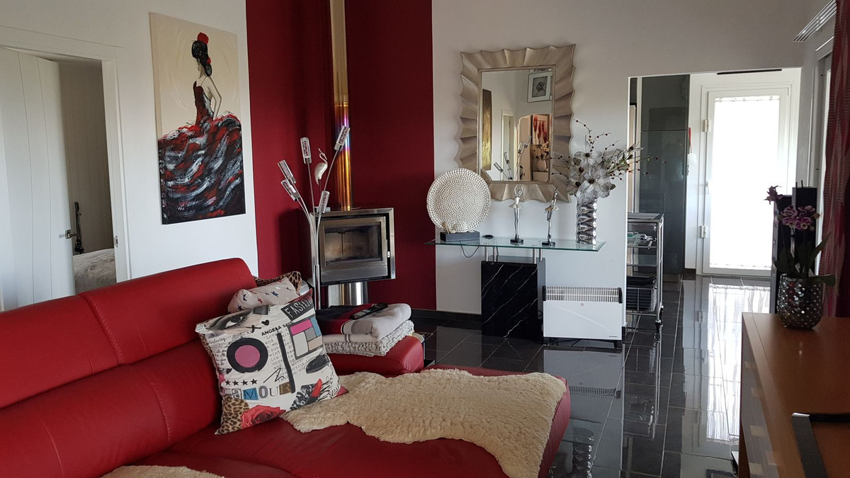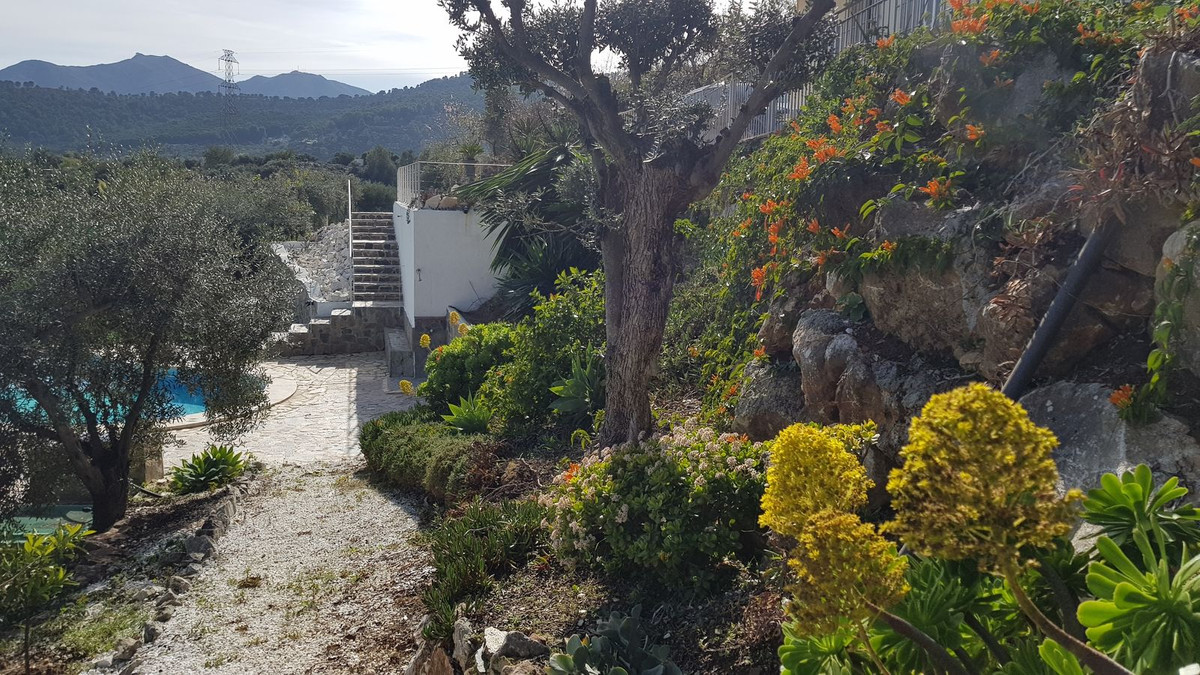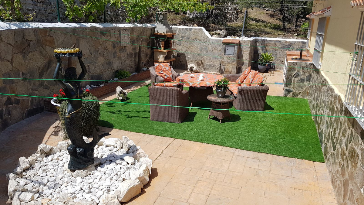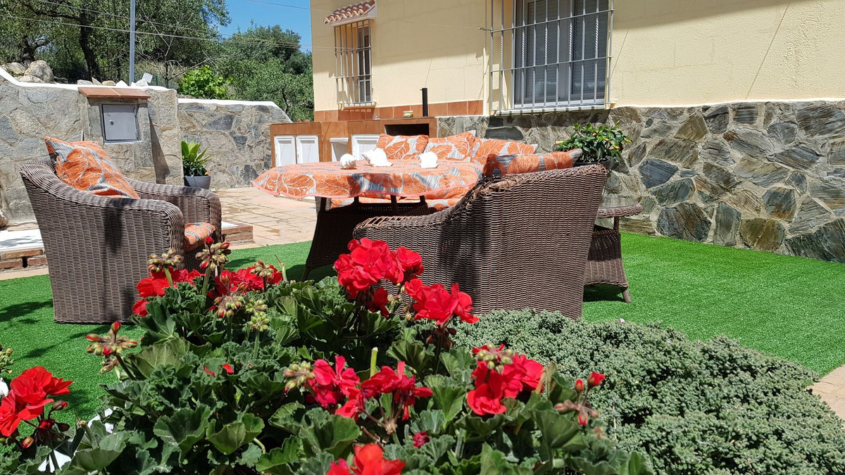 This beautiful country house - built in 2012 - has a large garage with workshop (approx. 45 m²), a guest flat (approx. 45 m²) with living room and open-plan kitchen, a shower room and a separate large terrace. The living space is approx. 90 m². There are 2 bedrooms and 2 bathrooms (one en-suite) and an open-plan kitchen - very smart and only 3 years old. A large terrace of approx. 30 m² with marvellous views of the mountains as far as Málaga and the Sierra Nevada is accessible from the living room, another terrace is located behind the building. There is a private well and a large underground tank with a capacity of 11,000 litres for drinking water in case the groundwater is insufficient. A small pool - not heated, no air conditioning and no heating - just a fireplace in the living room. The plot measures approx. 3,500 square metres and is planted with olive trees, lemon trees, vines, almond trees, etc.