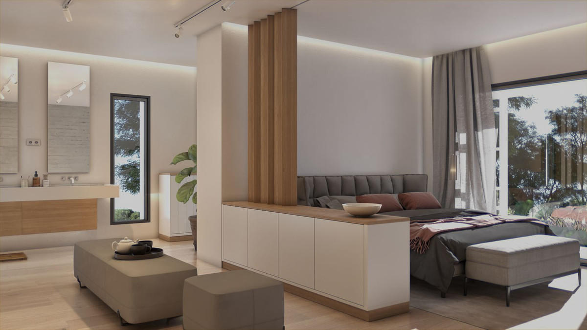 158 m2 house with 3 bedrooms and 3 bathrooms on a 319 m2 plot and pays for it during the work.