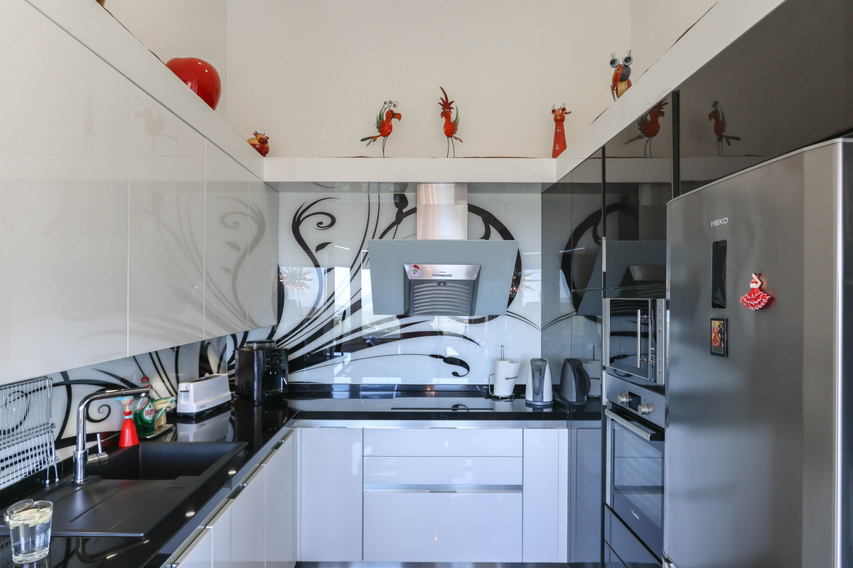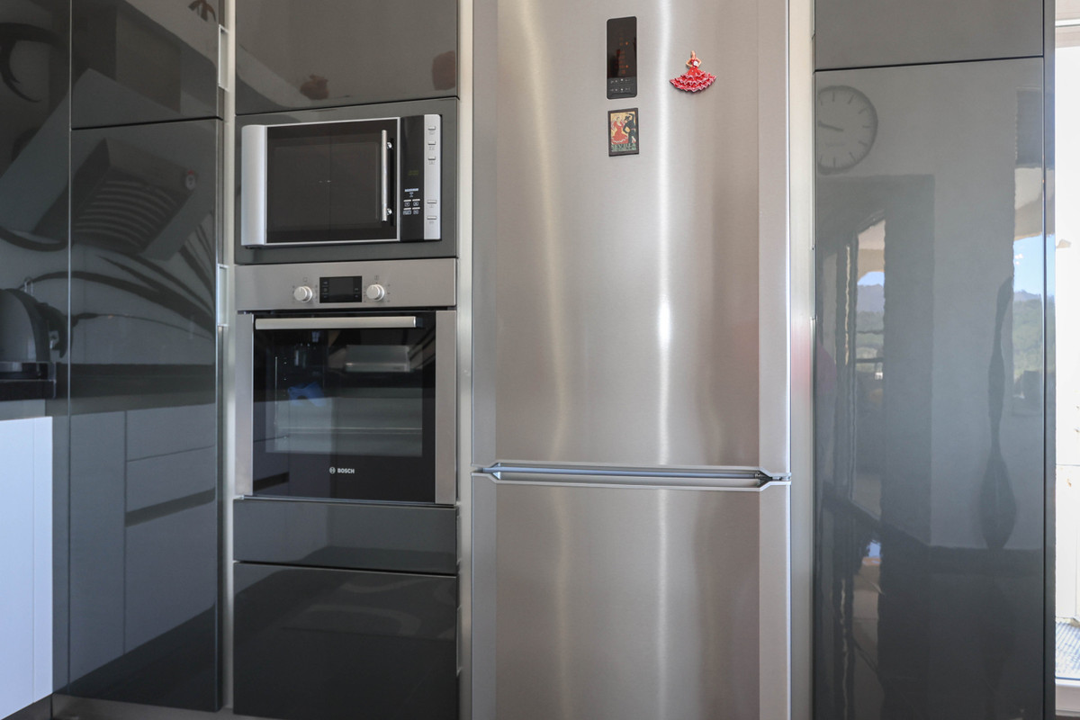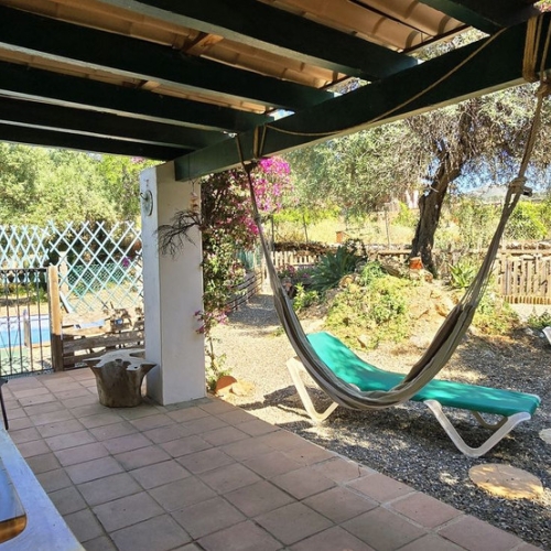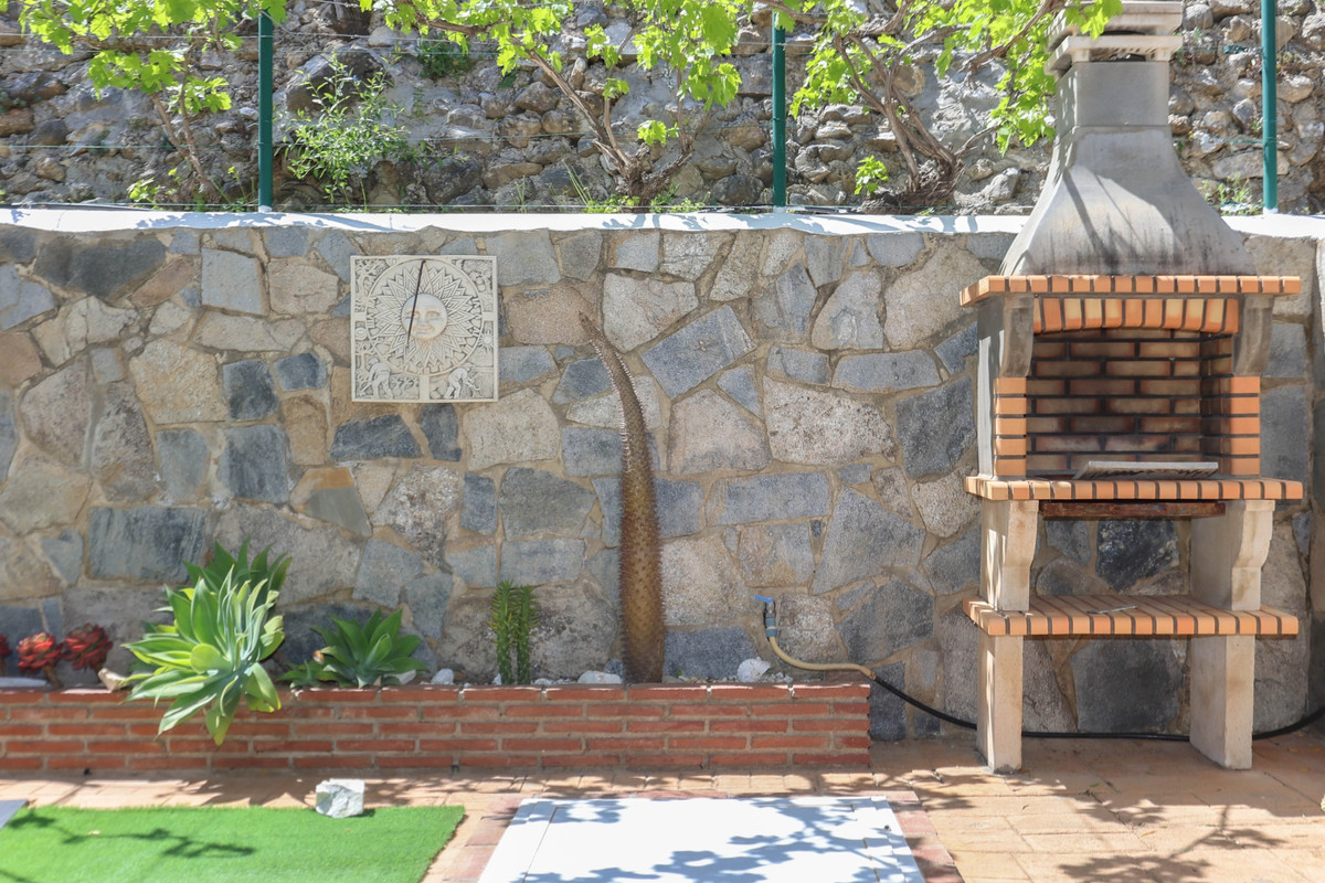 The house is built on two levels. The main accommodation is located on the the top level with the separate apartment sitting below. A staircase leads upto the front door with access to the rear shady terrace. Entering into the Villa you are immediatley impressed by the quality of the finish. To the right is the guest bathroom and to the left Bedrooms 3. Walking from the hallway into the bright lounge with high ceilings and two sets of patio doors the room feels light, airy and welcoming. A wood burning stove is located in the corner to provide winter heat. Both set of patio doors lead to the large covered terrace which sits to the front of the property, this is the most wonderful spot to sit and relax and enjoy the beautiful views.