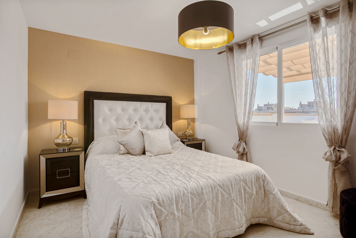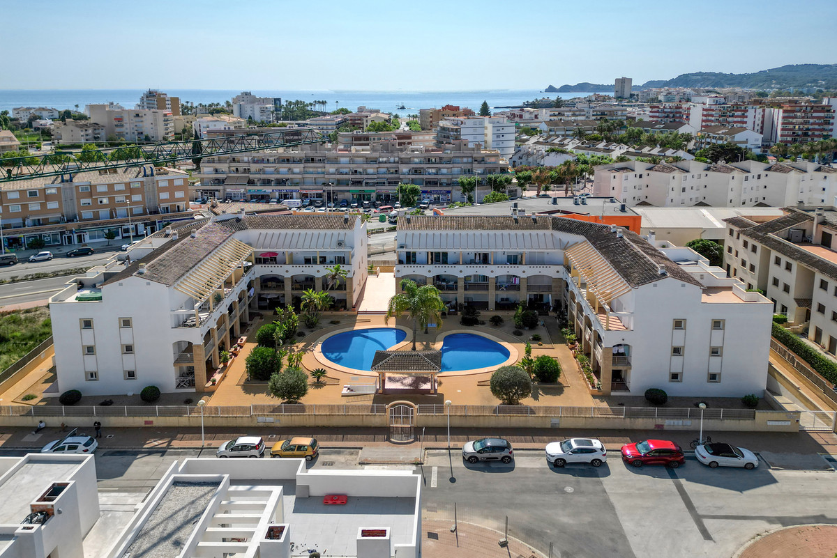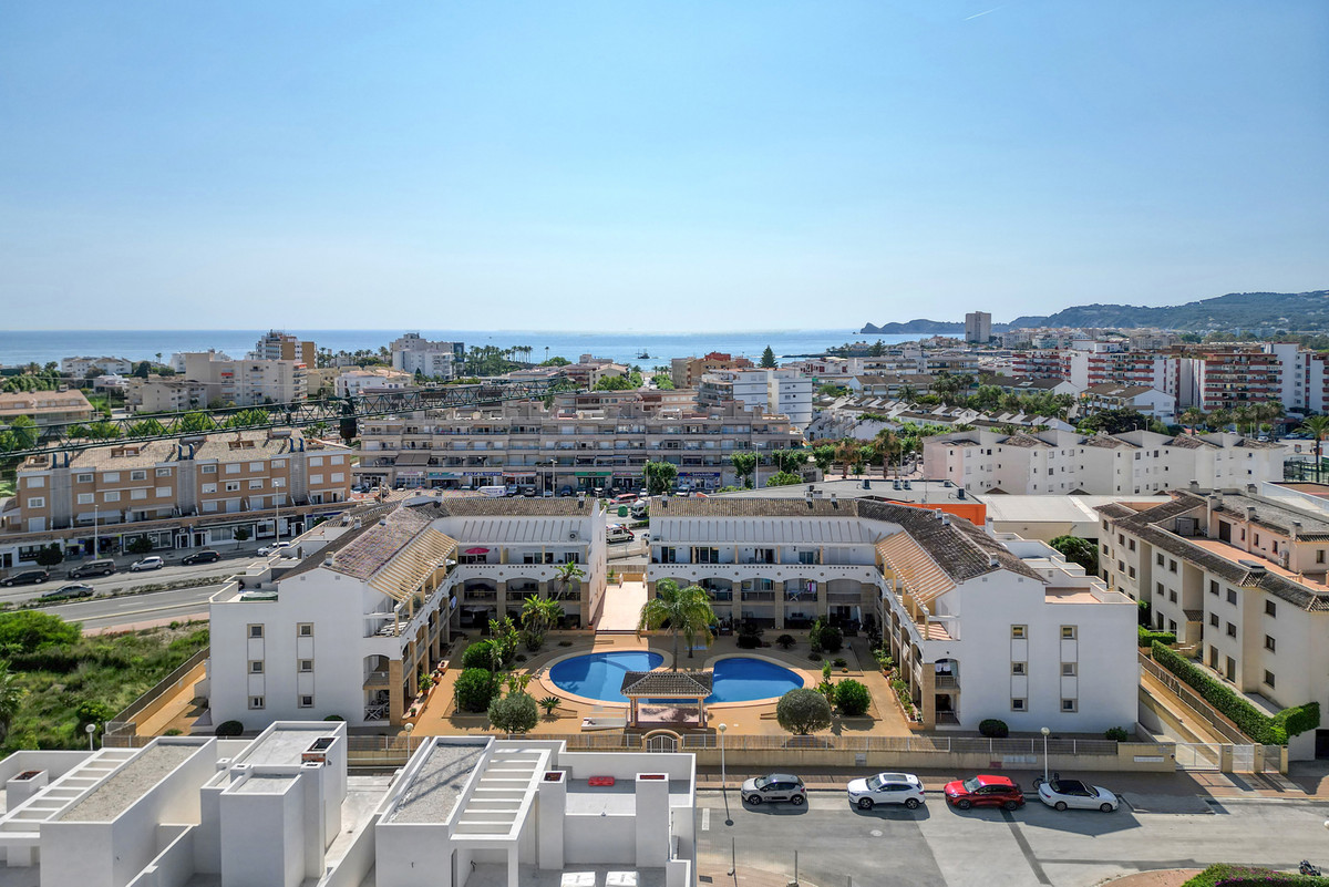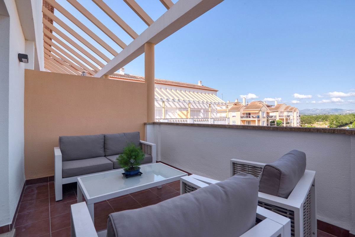 Three bedroom penthouse for sale in Javea only two minutes' walk from the Arenal beach with all amenities within reach. Located in a charming building with lift access and a tranquil communal pool, the property is distributed over two floors with the first floor consisting of two double bedrooms, a bathroom, a large kitchen and spacious lounge/dining area, both leading onto the front terrace, enjoying beautiful panoramic views. The interior staircase takes you to the master bedroom with an ensuite bathroom and gallery, leading to the very large roof-top terrace where you can enjoy stunning views. This property is a fantastic investment opportunity with lots of potential, also making for the perfect getaway escape or even full-time residence due to it´s prime location.