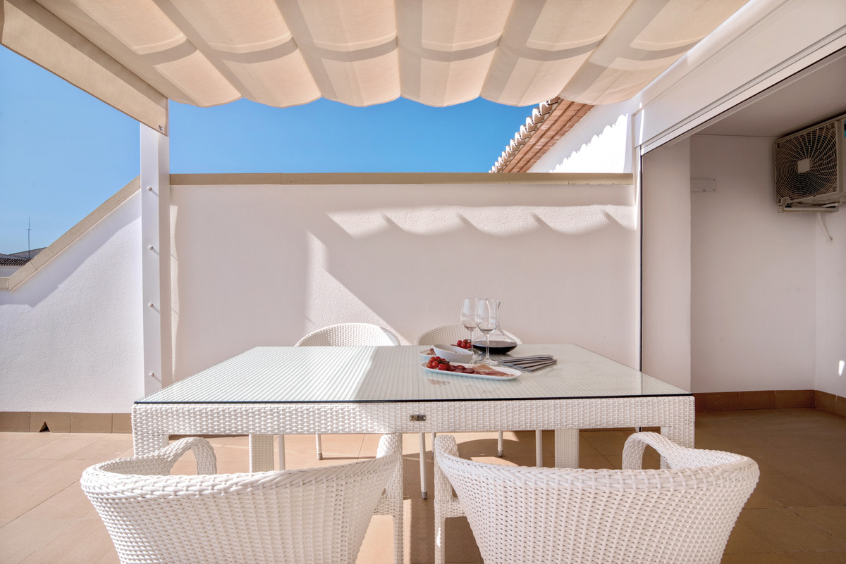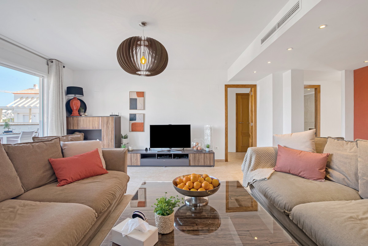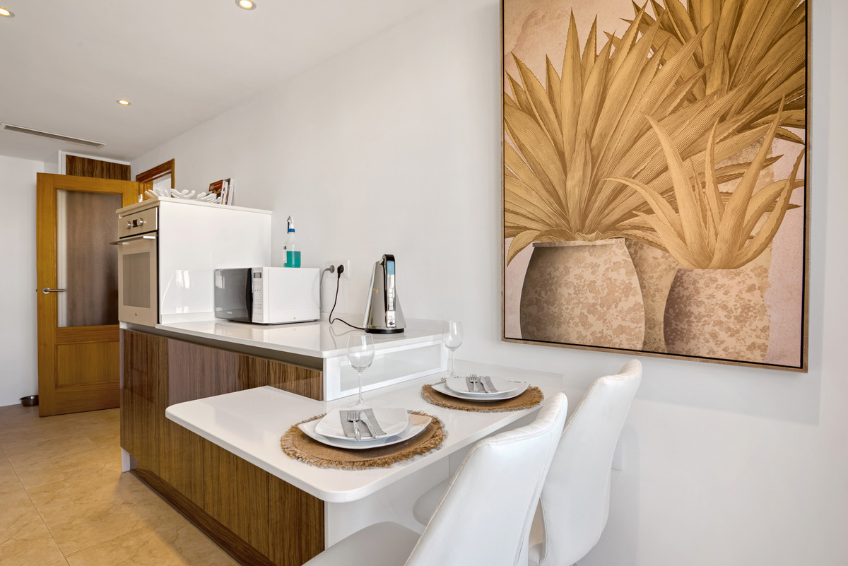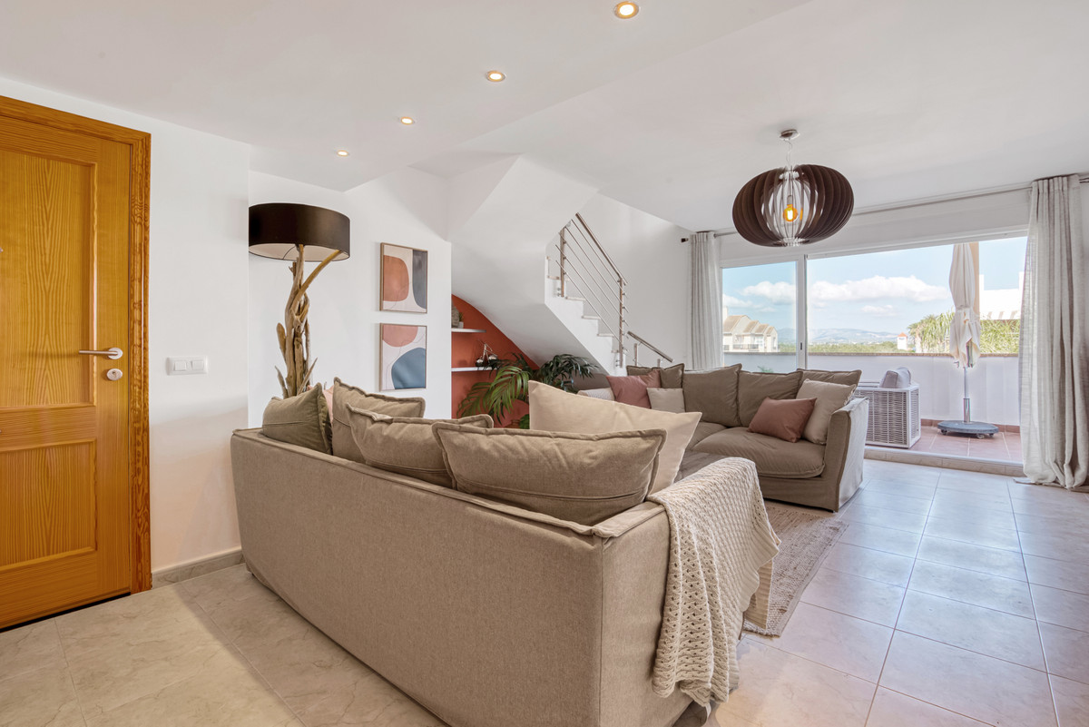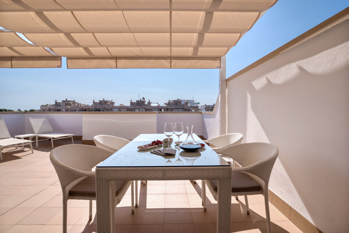 Three bedroom penthouse for sale in Javea only two minutes' walk from the Arenal beach with all amenities within reach. Located in a charming building with lift access and a tranquil communal pool, the property is distributed over two floors with the first floor consisting of two double bedrooms, a bathroom, a large kitchen and spacious lounge/dining area, both leading onto the front terrace, enjoying beautiful panoramic views. The interior staircase takes you to the master bedroom with an ensuite bathroom and gallery, leading to the very large roof-top terrace where you can enjoy stunning views. This property is a fantastic investment opportunity with lots of potential, also making for the perfect getaway escape or even full-time residence due to it´s prime location.