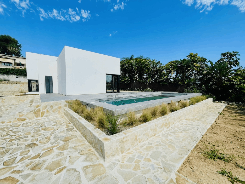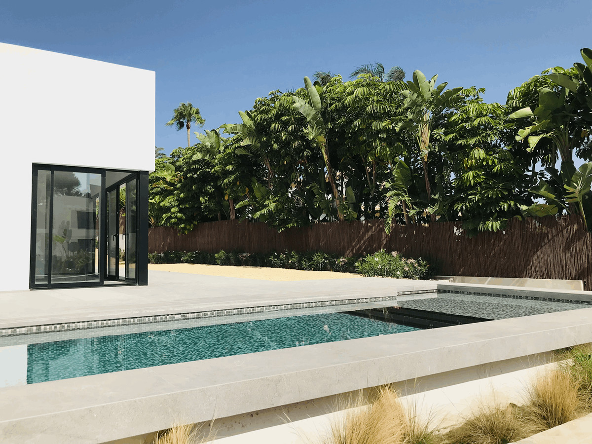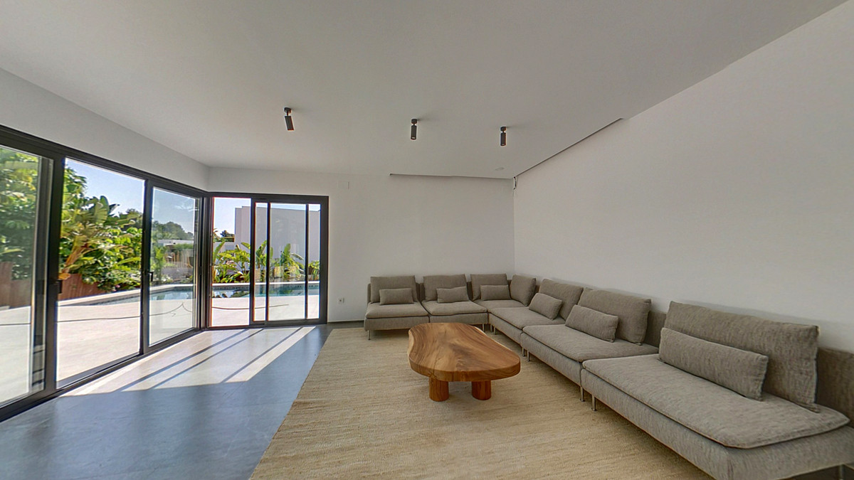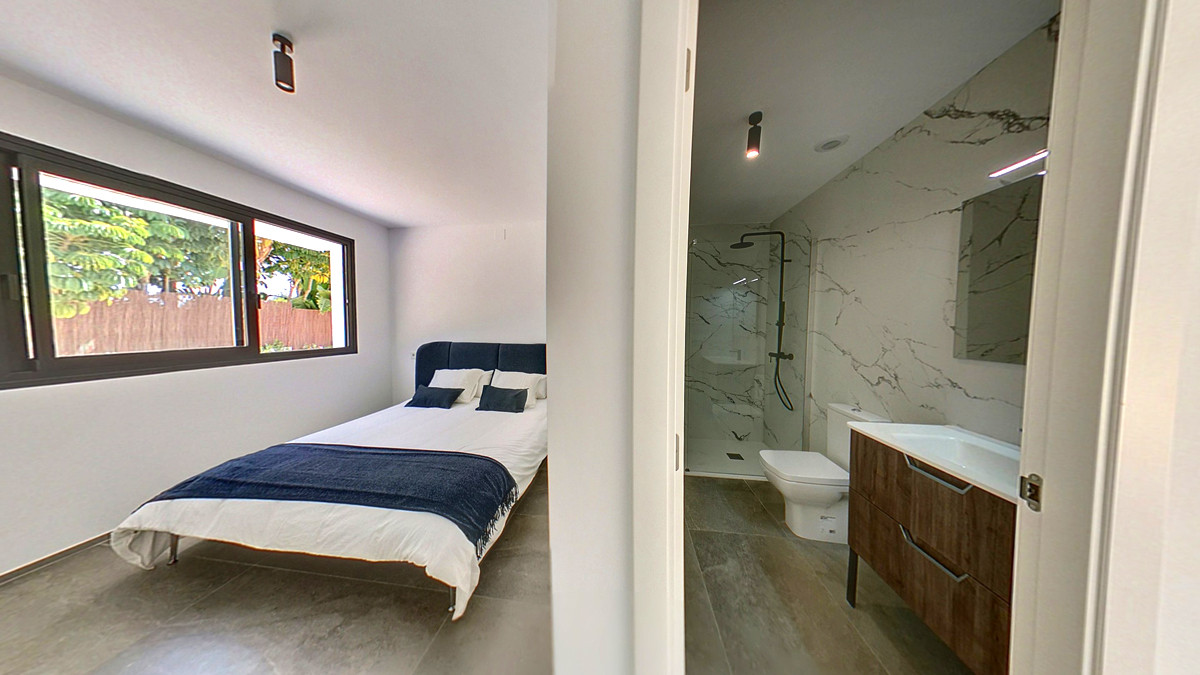 Upon entering, you will be greeted by a spacious living-dining room that connects to the naya and the pool terrace. This space is perfect for enjoying moments of relaxation and fun with family and friends. The intelligent layout of the house ensures a perfect flow between the indoor and outdoor spaces.