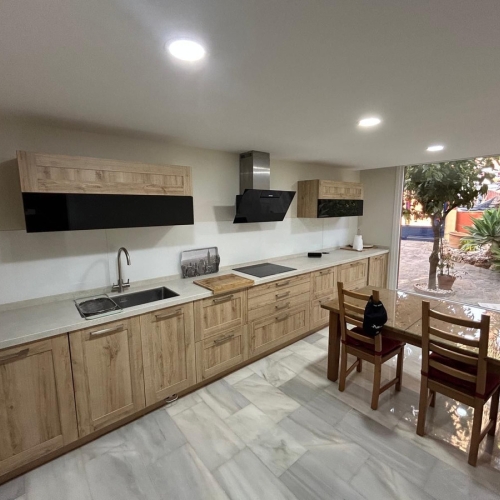 Fully furnished and equipped kitchen, a generously sized sunlit living room facing west, receiving afternoon sun. It boasts a fireplace in perfect condition.